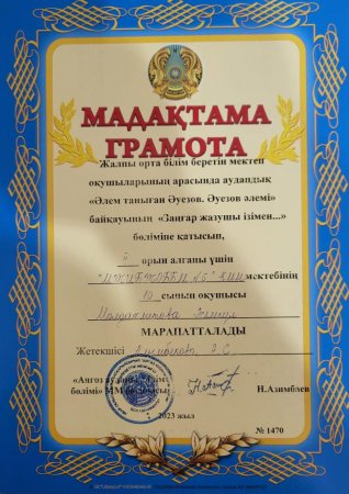 Жалпы орта білім беретін мектеп оқушыларының арасында аудандық “Әлем таныған Әуезов.Әуезов әлемі” байқауының “Заңғар жазушы ізімен…”