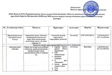 Аягөз ауданы білім бөлімінің оқу, ғылыми, ұйымдастырушылық кабинетінің жоспары бойынша “Біртұтас тәрбие” бағдарламасы аясында