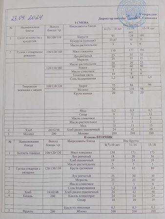 Күн мәзіріне берілетін ыстық тамақ 23.04.2024