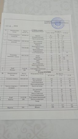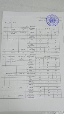 Күн мәзіріне берілетін ыстық тамақ 17.10.2024