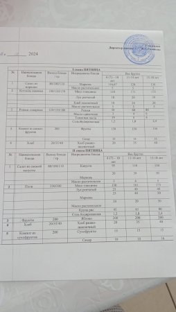 Күн мәзіріне берілетін ыстық тамақ 23.10.2024