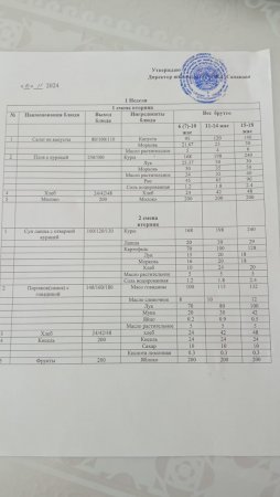 Күн мәзіріне берілетін ыстық тамақ 28.11.2024