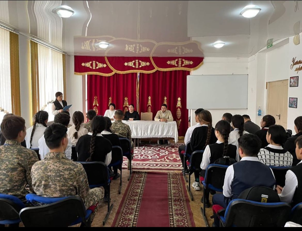 16 қараша 2022 жыл мектебімізде 9,10,11 сыныптарға "Дін-тәрбие діңгегі" атты кездесу өткізілді.Мақсаты: Діни экстремизмнің алдын алу бойынша жастардың діни сауаттылықтарын ашу,қатер төндіретін жат діни ағымдардан сақ болуға, жастарды Отан сүйгіштікке тәрбиелеу.