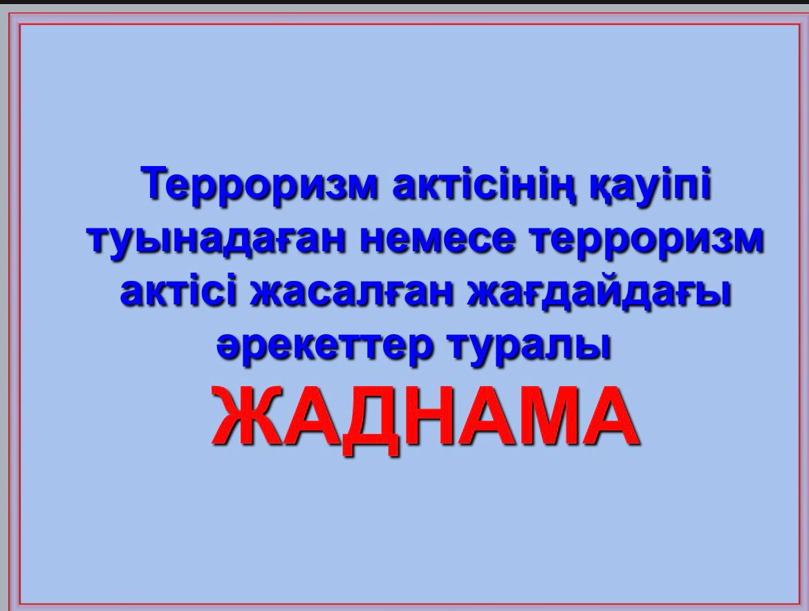 Терроризм актісінің қауіпі, терроризм актісі жасалған жағдайдағы әрекеттер туралы жаднама!