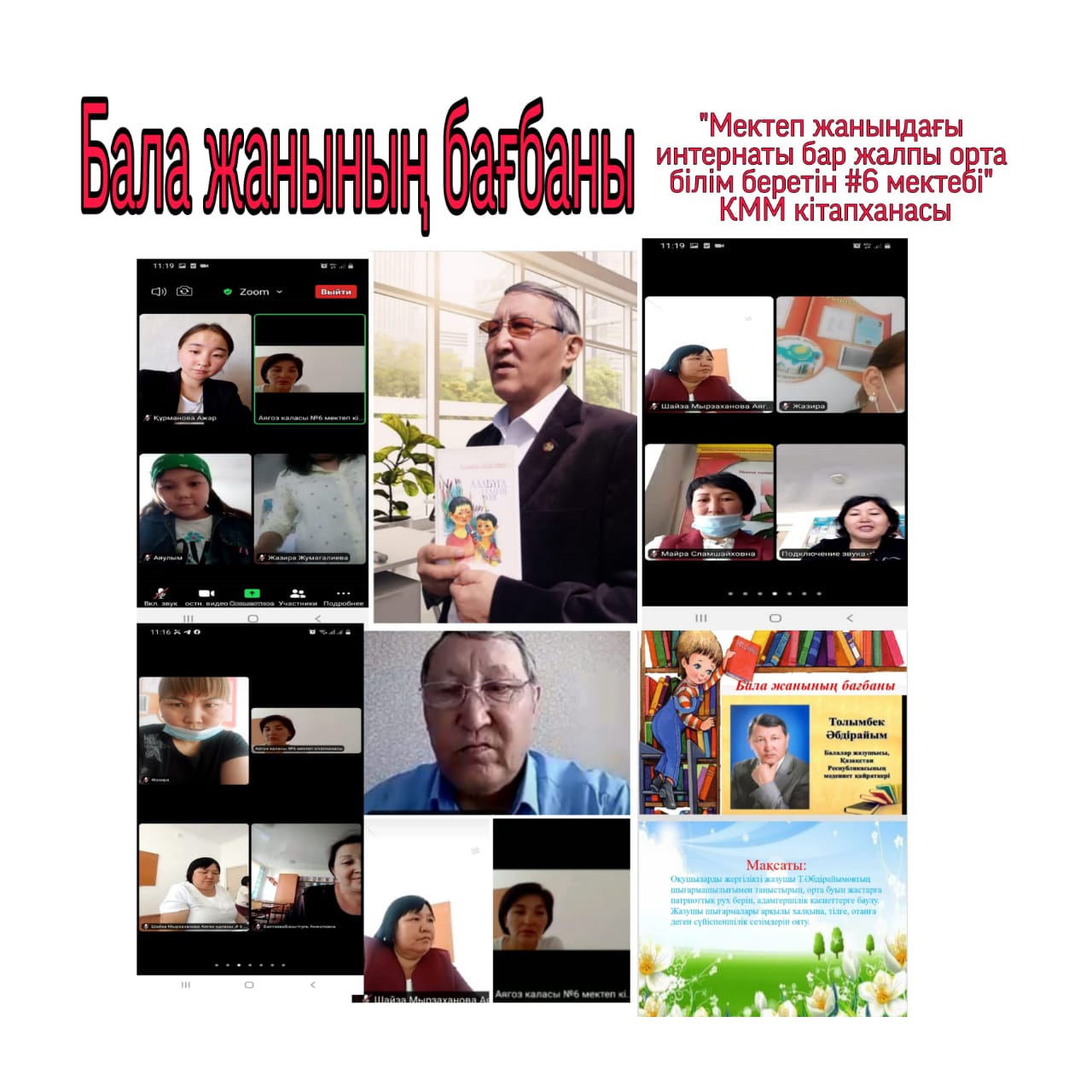 27 мамыр күні 1 маусым - Балаларды қорғау күні мерекесіне орай Жерлес жазушымыз Аягөз өңірінің тумасы балалар жазушысы, Қазақстан республикасының мәдениет қайраткері Толымбек Әбдірайымен "Мектеп жанындағы интернаты бар жалпы орта білім беретін #6 мектебі" КММ-нің мектеп кітапханасында «Таңғажайып әлем» V блог бойынша "Бала жанының бағбаны" атты Zoom платформасы арқылы онлайн кездесу өтті.