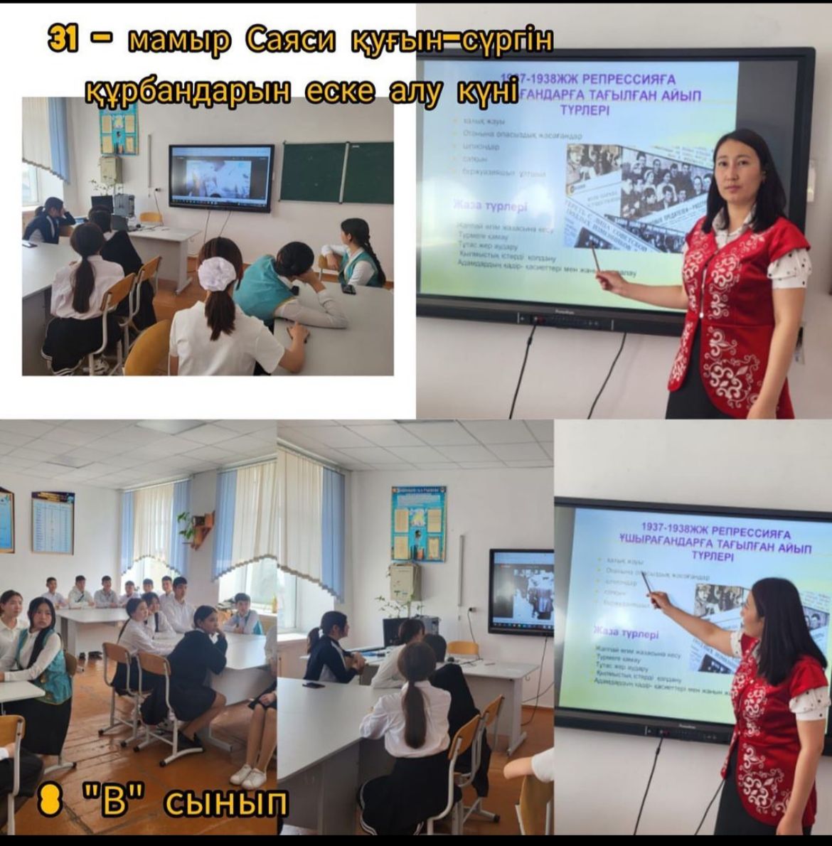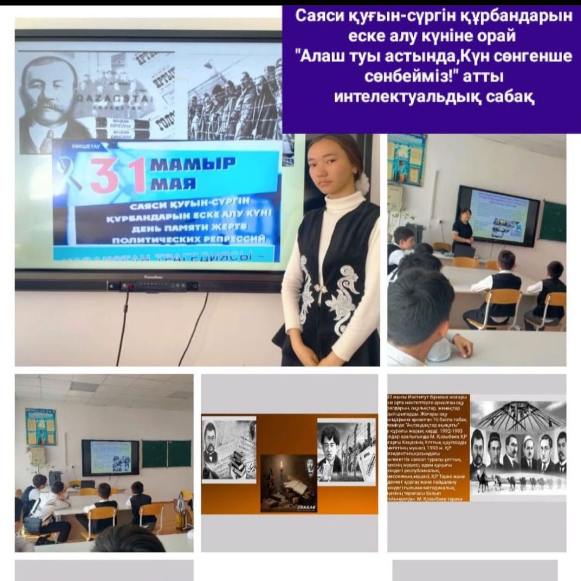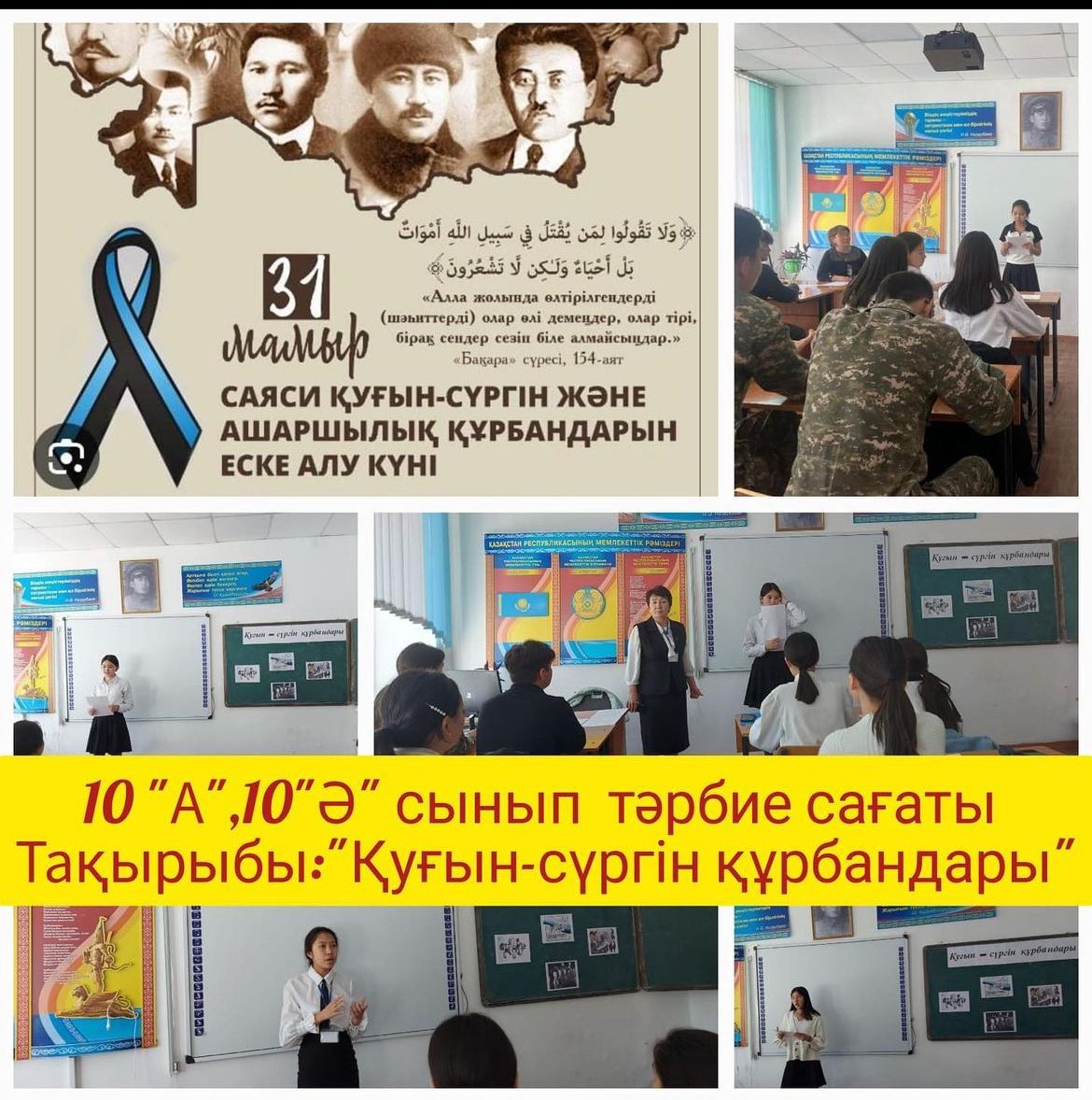 31 мамыр саяси қуғын-сүргін құрбандарын еске алу күніне орай сыныптарда өткізілген тәрбие сағаттары