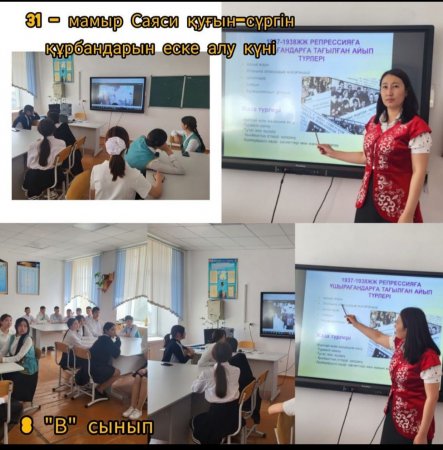 » 31 мамыр саяси қуғын-сүргін құрбандарын еске алу күніне орай сыныптарда өткізілген тәрбие сағаттары