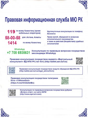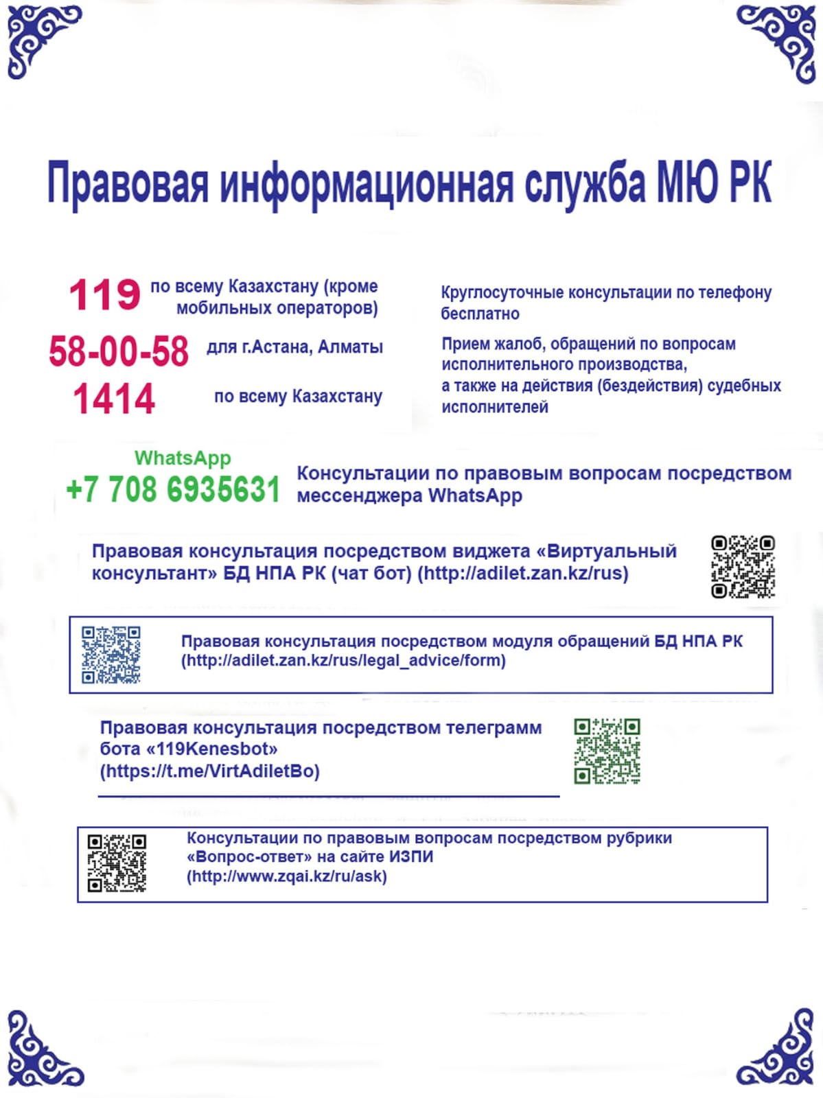 Білім басқармасы Қазақстан Республикасы Президенті Қ.Қ.Тоқаевтың азаматтардың құқықтық сауаттылығын арттыру туралы тапсырмасын жүзеге асыру бойынша Абай облысы Әділет департаментінен келіп түскен 2023 жылғы 13 қыркүйектегі #18-06/711-И хатқа қосымша ретінде тіркелген құқықтық ақпарат қызметі туралы инфографика жұмыстары ақпарат тақтасына ілініп, таныстыру жұмыстары жүргізілді.