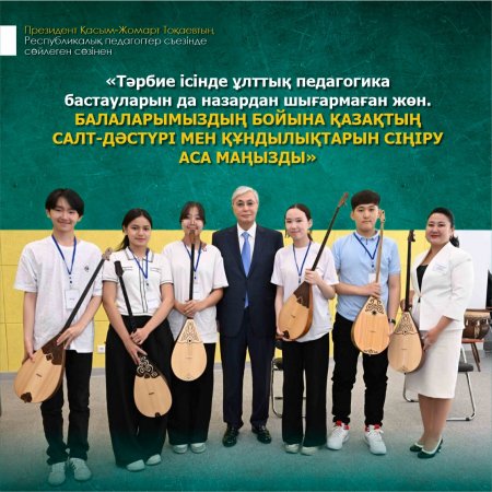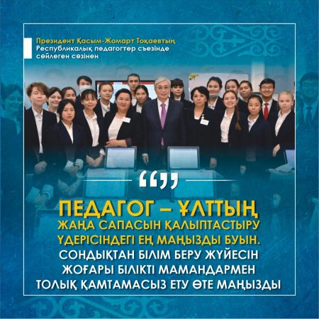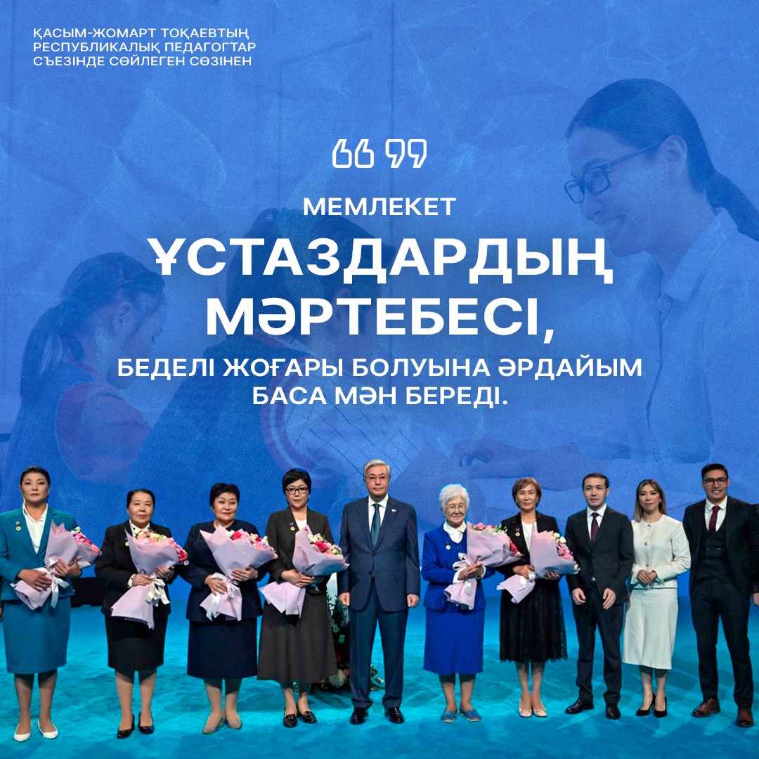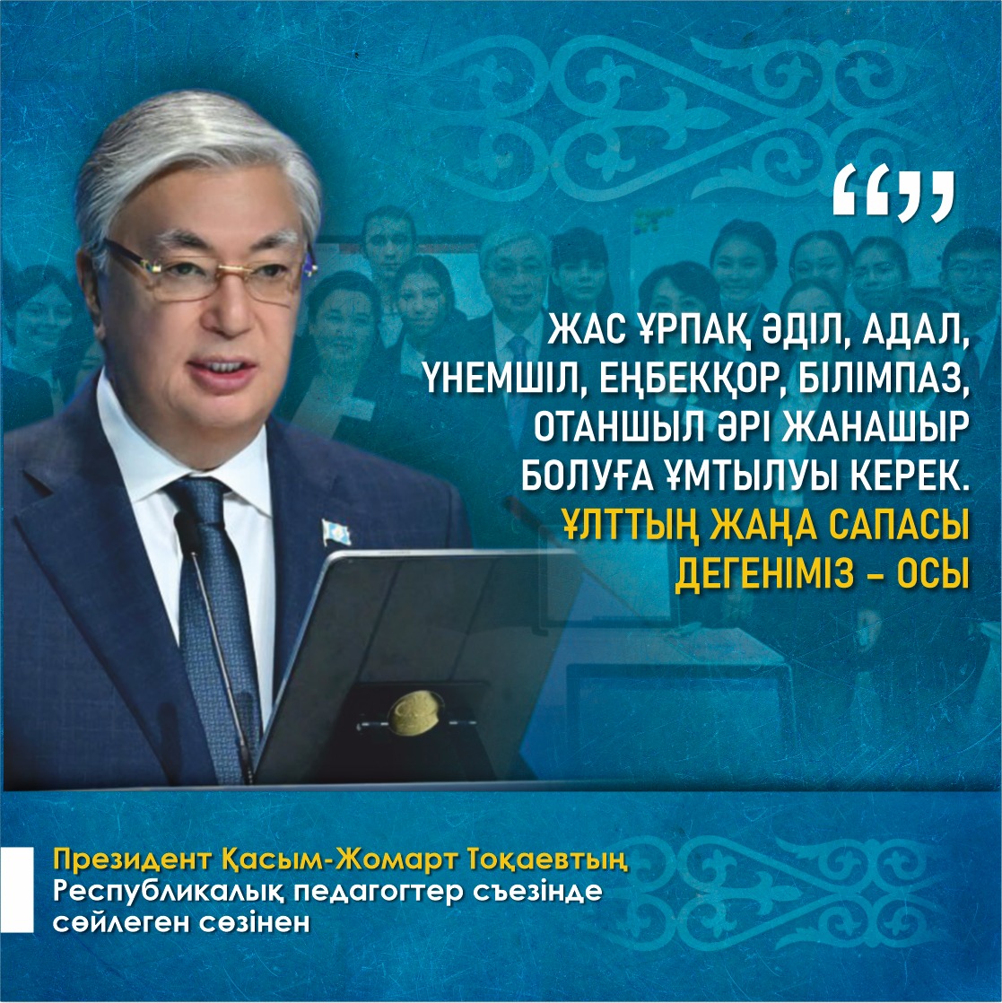 ҚР Президенті Қасым-Жомарт Тоқаевтың I Республикалық педагогтер съезінде сөйлеген сөзінен