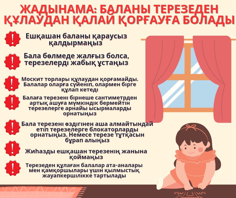 Қауіпсіздік талаптарын сақтау және балалардың терезеден құлауына жол бермеу бойынша түсіндірме жұмыстары.