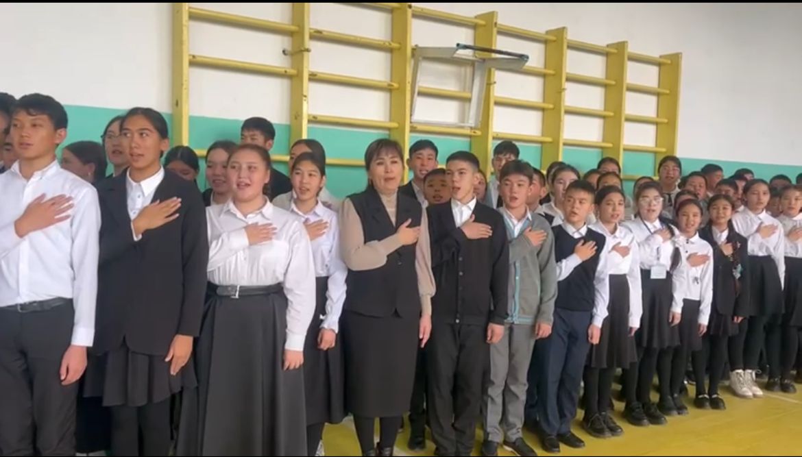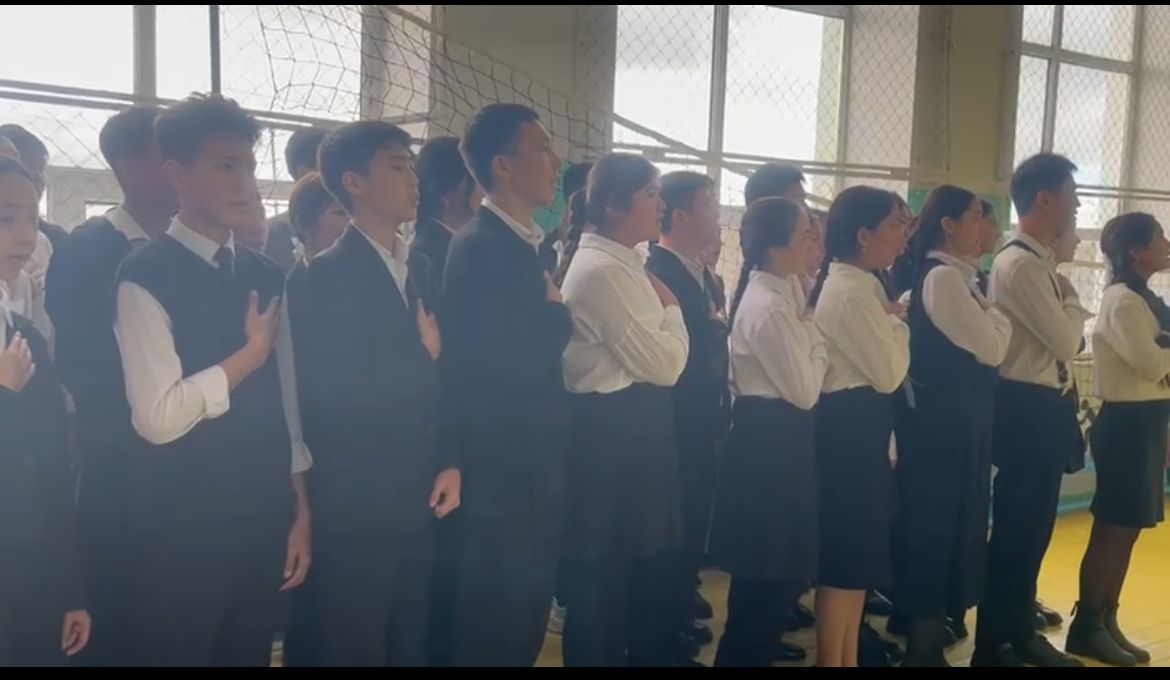 «Мектеп жанындағы интернаты бар жалпы орта білім беретін #6 мектебі» КММ-де 23 қазан күні сағат 12.00-де “9 айға 9 іс -шара” жобасы аясында “Мемлекеттік Гимн орындау” челленджіне қатысты.