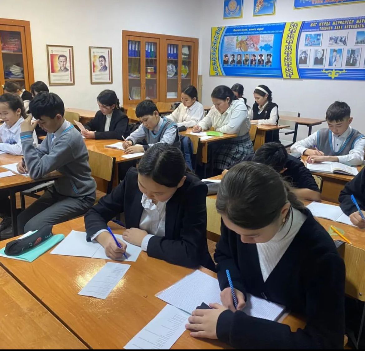 “Мектеп жанындағы интернаты бар жалпы орта білім беретін №6 мектебі” КММ-де 26 қаңтар күні сағат 12:00 де “9 айға 9 іс-шара” жобасы аясында “Қазақ есебі А.Жұмаділдаевтың ұсынған есептерін шығару” челленджіне қатысты.