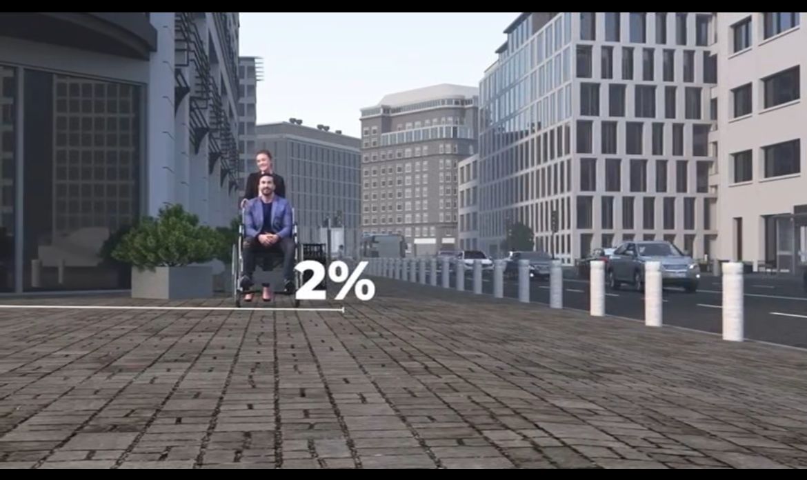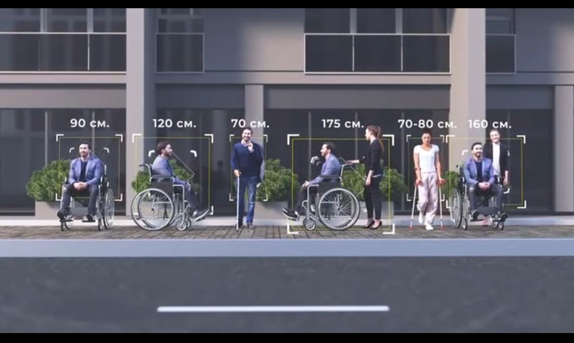 Қозғалысы шектеулі, қосымша көлік құралдарын пайдаланатын әрбір келуші үшін, жайлылық аймақтардың өлшемдері қолданылады. Мүгедектігі бар адамдар баратын обьектілерге жолдағы көлік өткелдерін, жаяу жүргіншілер жолдарымен біріктіруге болады. Егер қозғалыс жолының параметрлері бойынша қала құрылысы талаптары орындалған болса, онда мүгедектігі бар адамдардың арбасындағы адам өте алатын тегіс болуы тиіс 5 % -дан аспауы қажет. Ал сол жолдың көлденең еңісі 1-2% мөлшерінде қолайлы.Автобус аялдамаларында көрнекі ақпараты 140 см-ден 150 см дейінгі биіктікте орналастыру ұсынылады. Автобустарда кемінде 2 жолаушы есігі болуы керек.Олардың біреуі мүгедектігі бар адам арбасындағы адамға автобусқа кіруге және шығуға мүмкіндік беретін құрылғымен жабдықталған болуы керек.