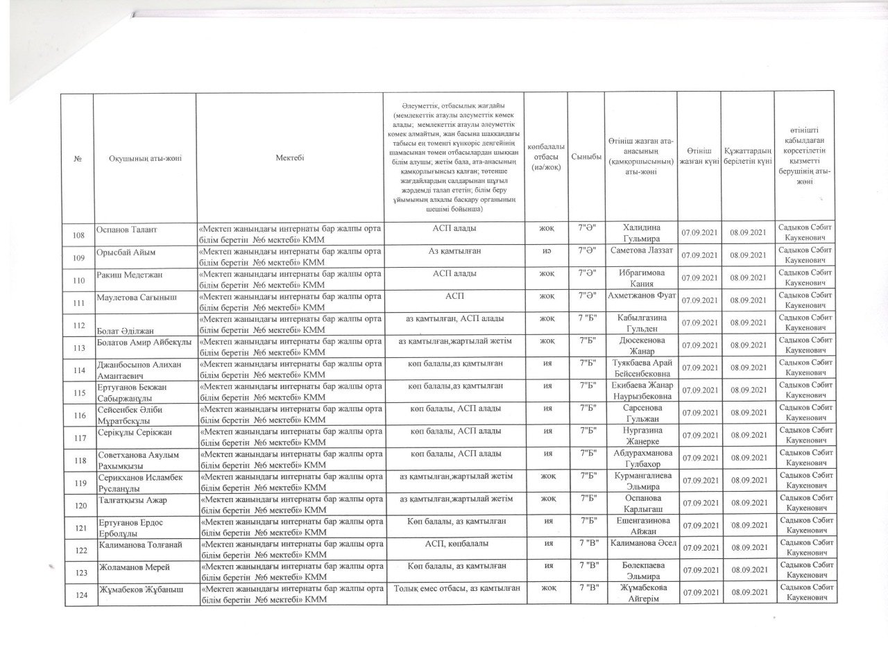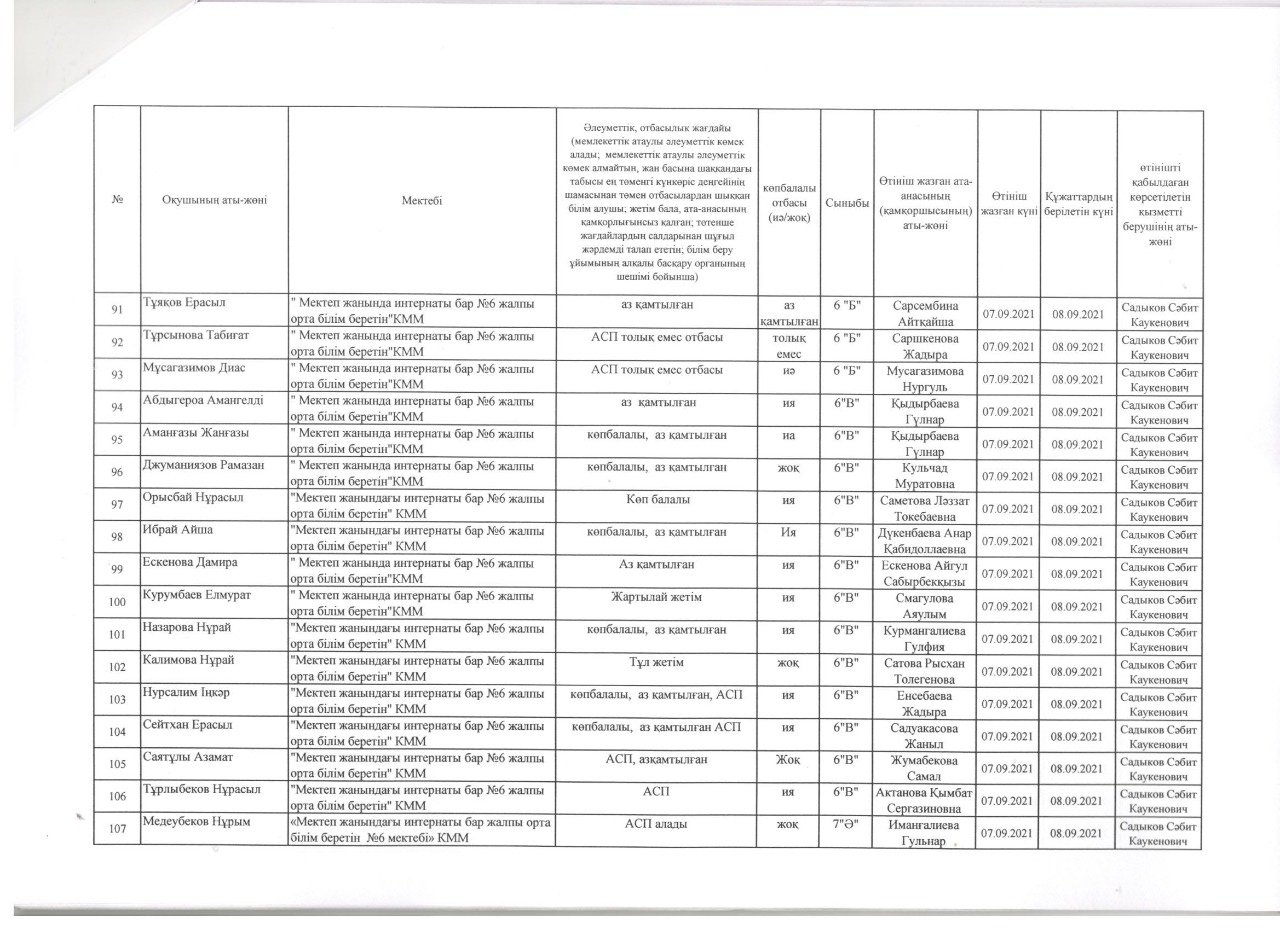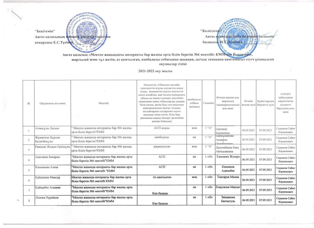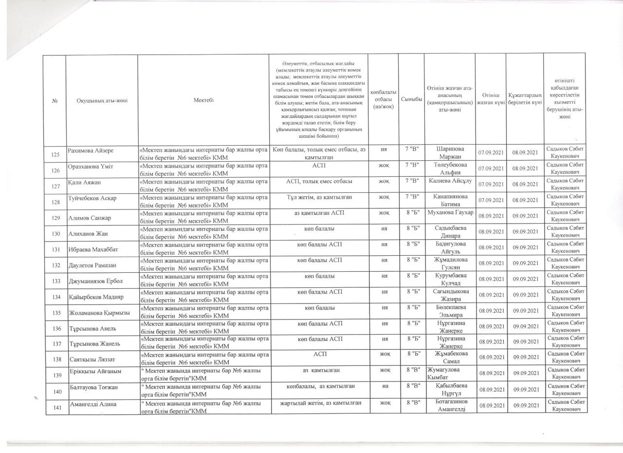 қамтамасыз етілетін білім алушылар мен тәрбиеленушілердің тізіміне