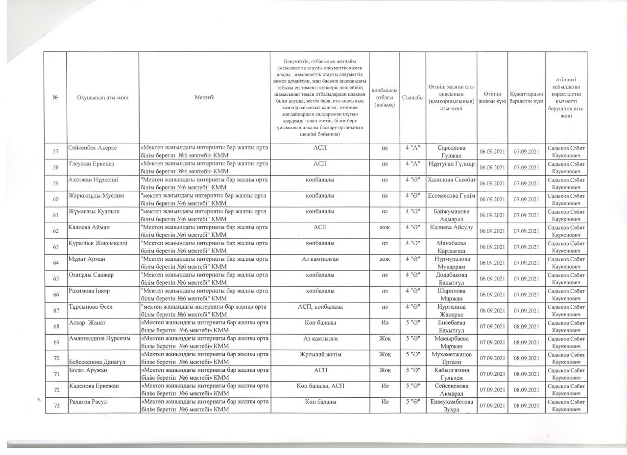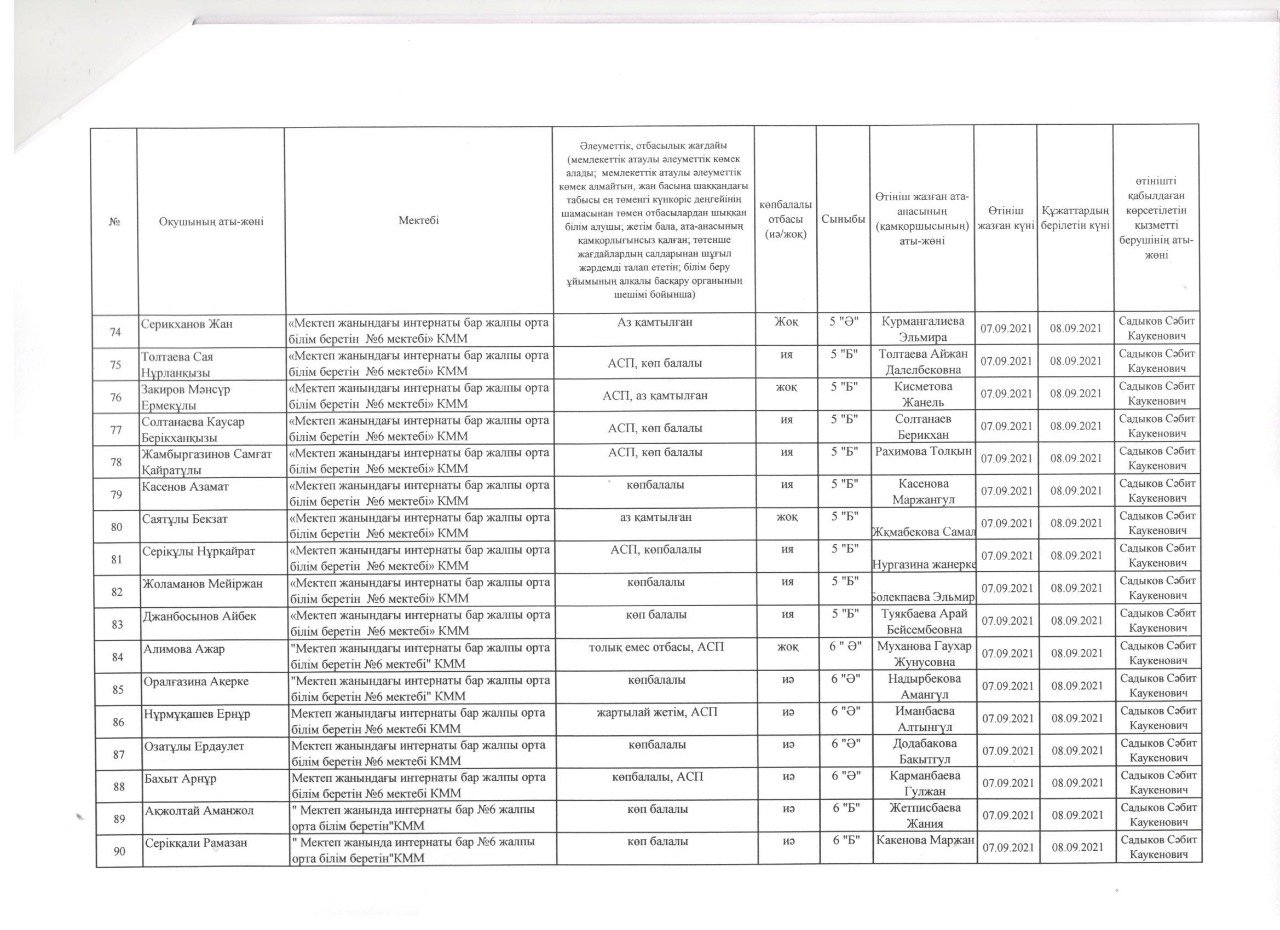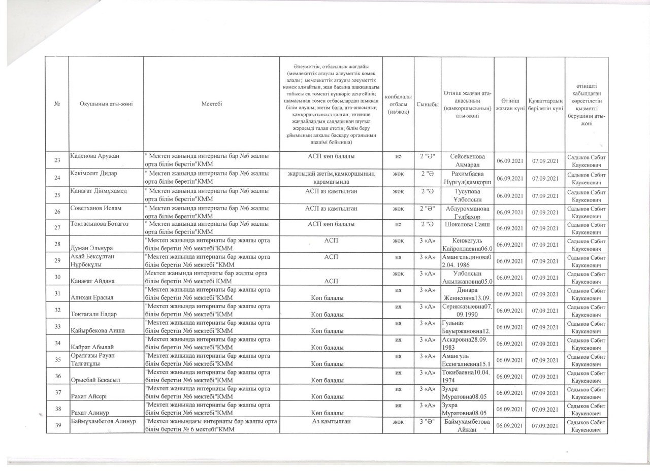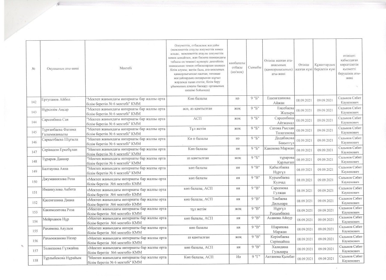 қамтамасыз етілетін білім алушылар мен тәрбиеленушілердің тізіміне
