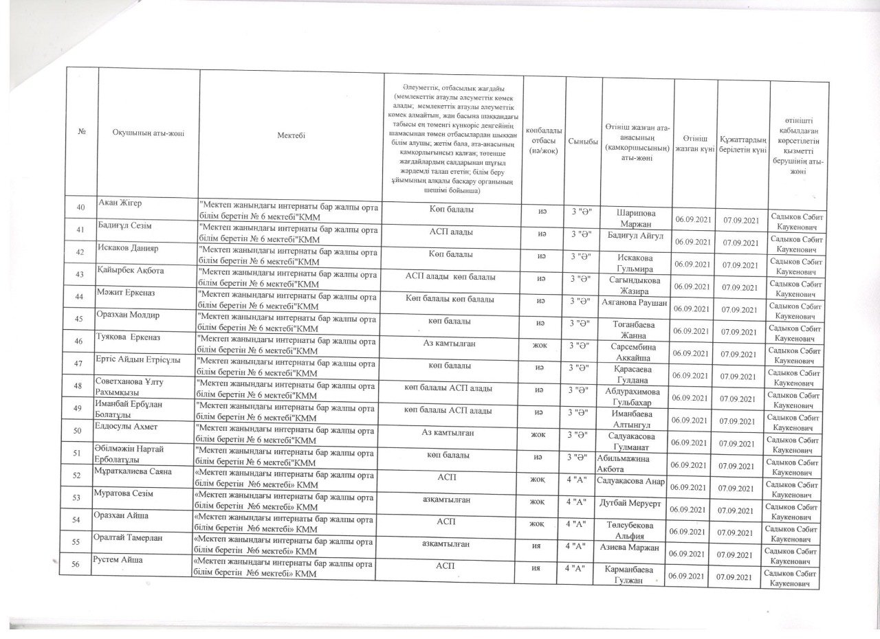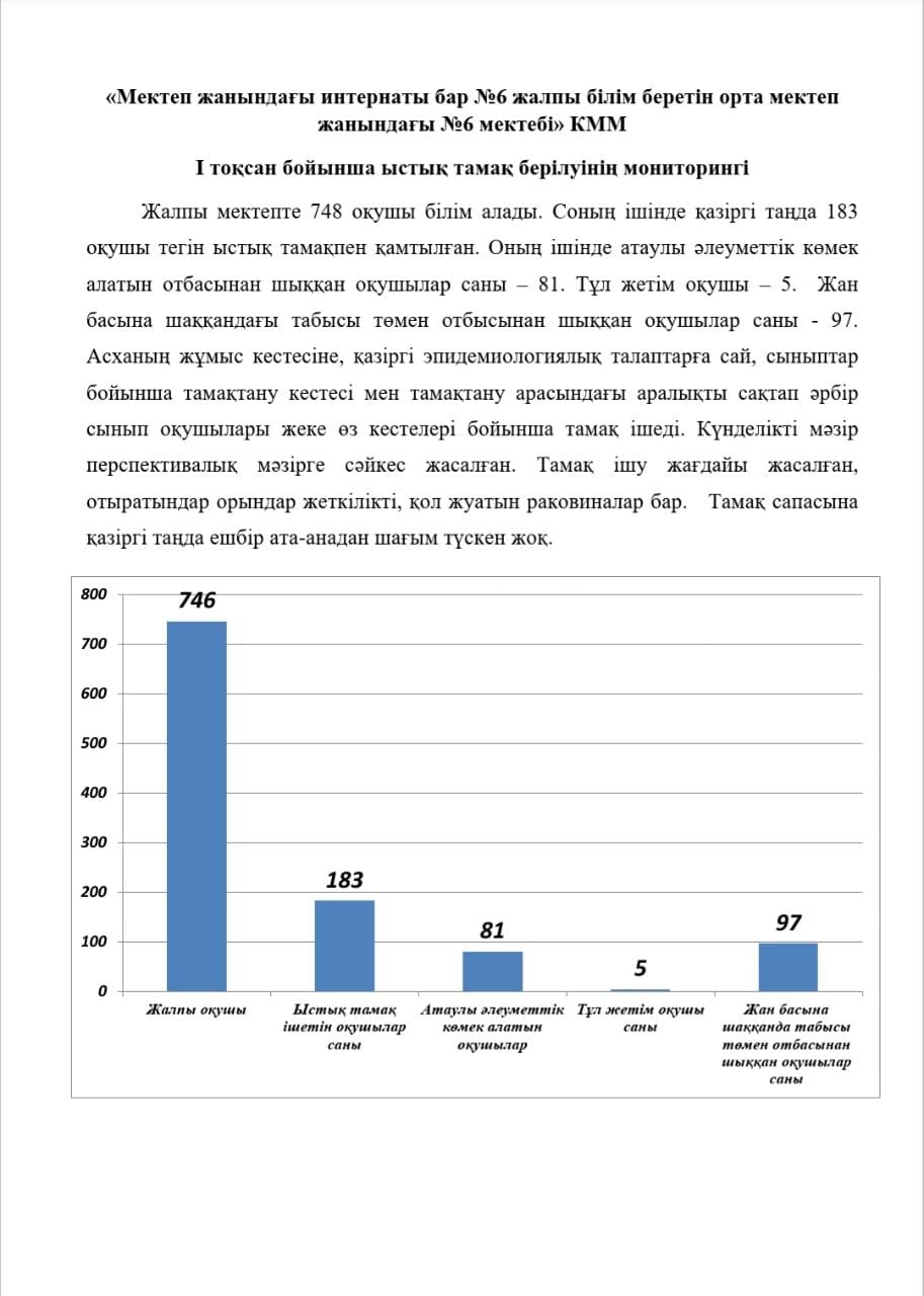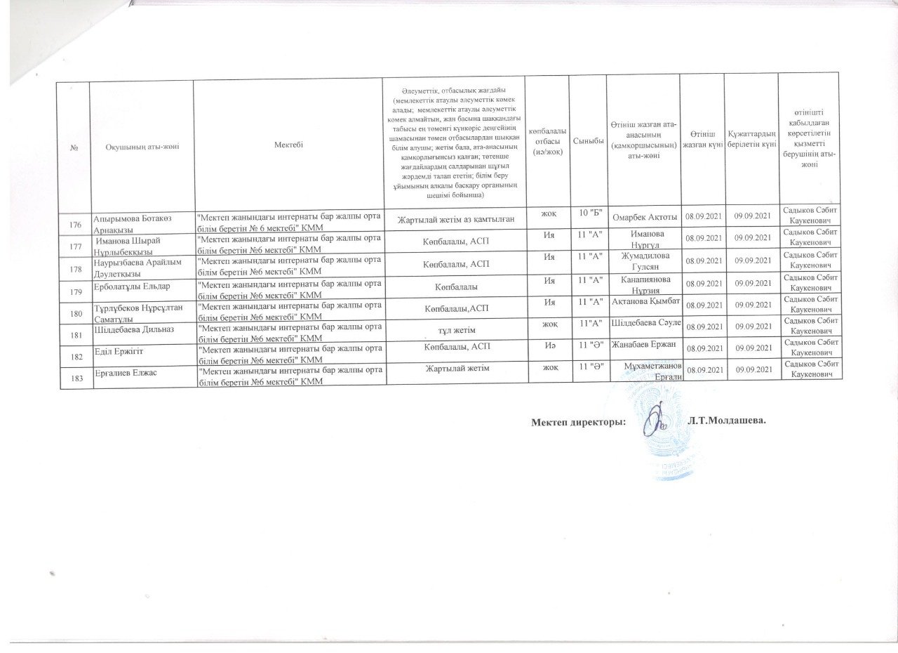 "Мектеп жанындағы интернаты бар жалпы орта білім беретін №6 мектебі"КММ