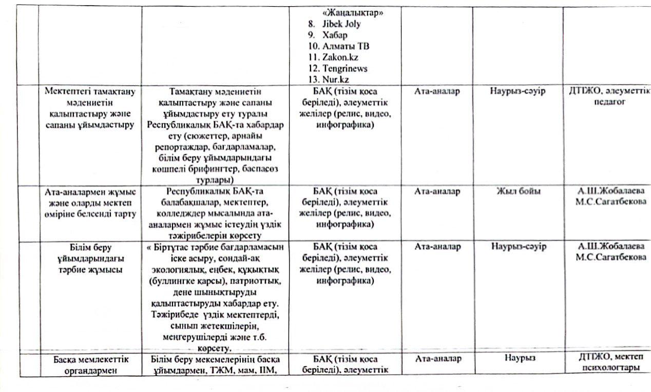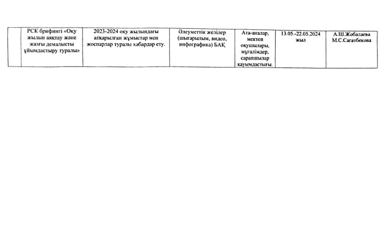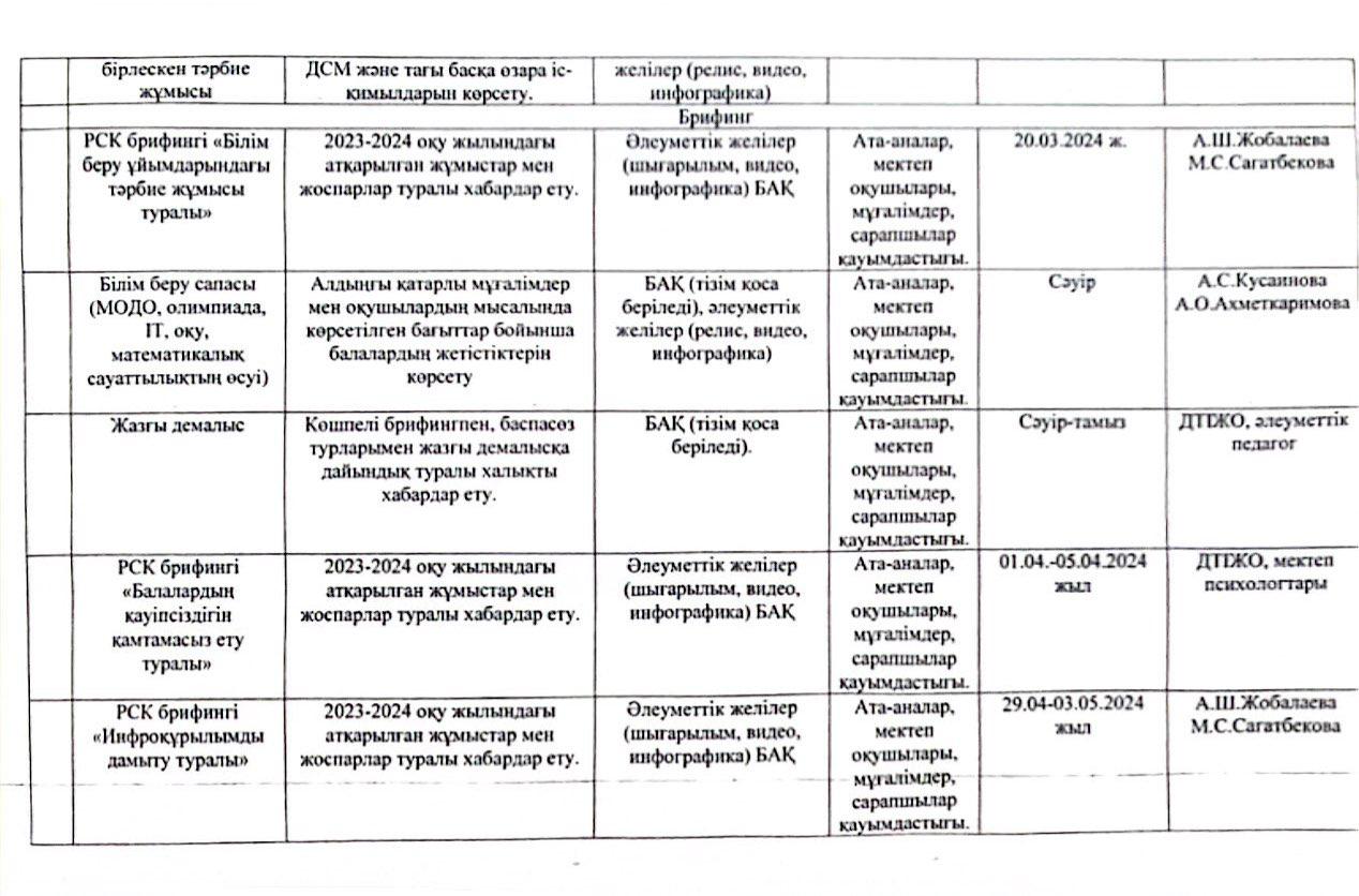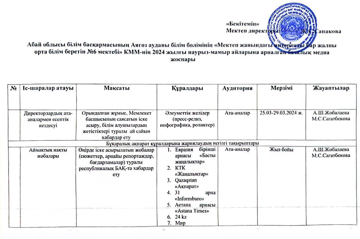 "Мектеп жанындағы интернаты бар жалпы орта білім беретін #6 мектебі"КММ-ның 2024 жылғы наурыз-мамыр айларына арналған базалық медиа жоспары