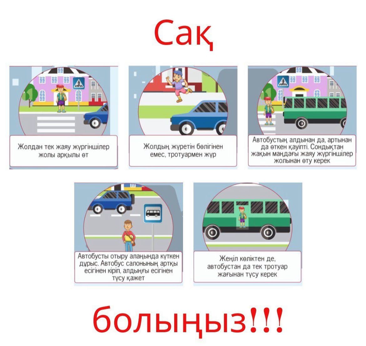 Жолда және көлікте қауіпсіз жүріс-тұрыс ережелері бойынша нұсқаулық.