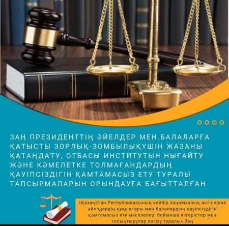 Президент әйелдердің құқықтары мен балалардың қауіпсіздігін қамтамасыз ету мәселелері жөніндегі Занға қол қойды