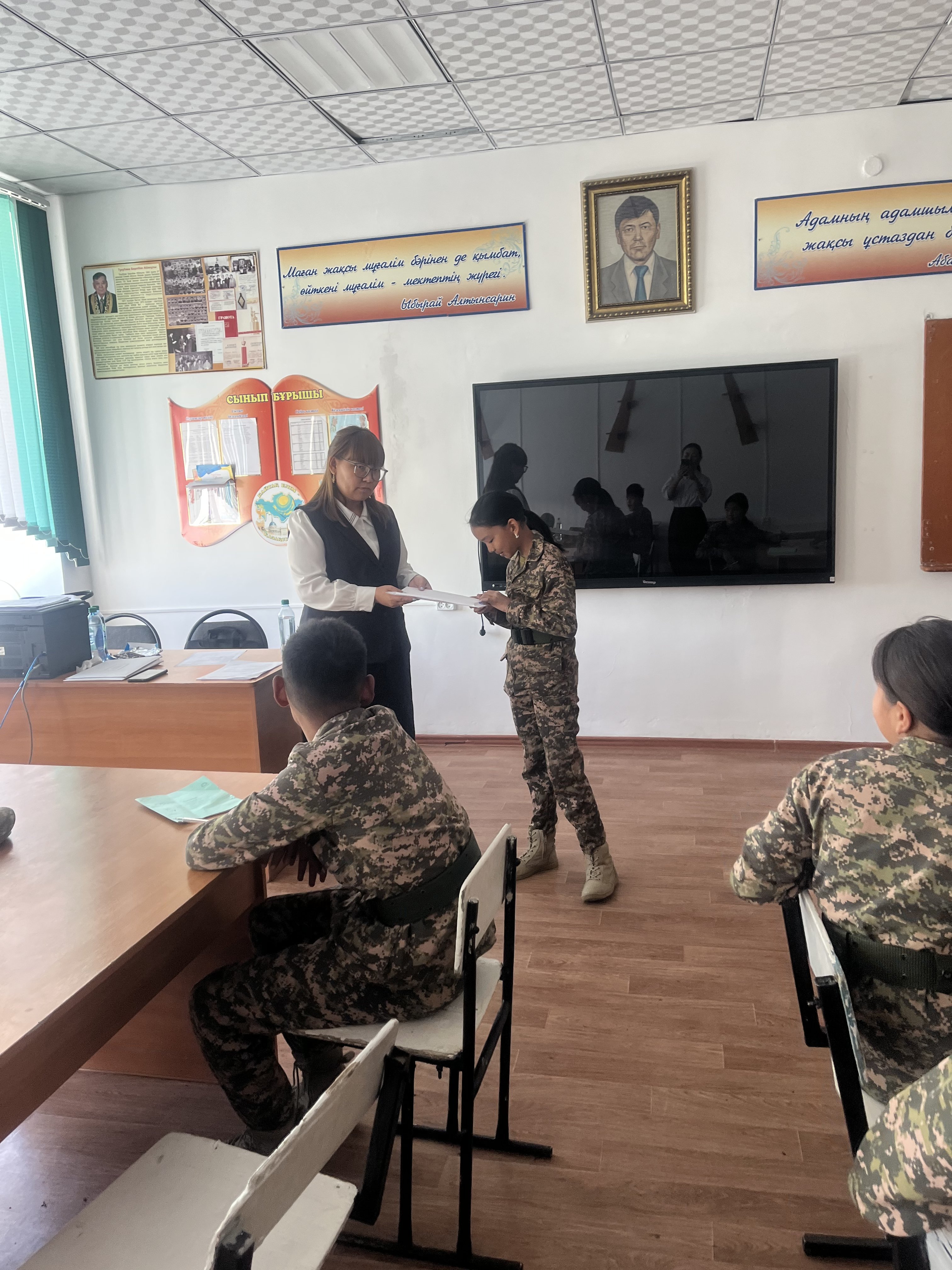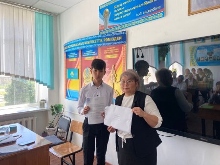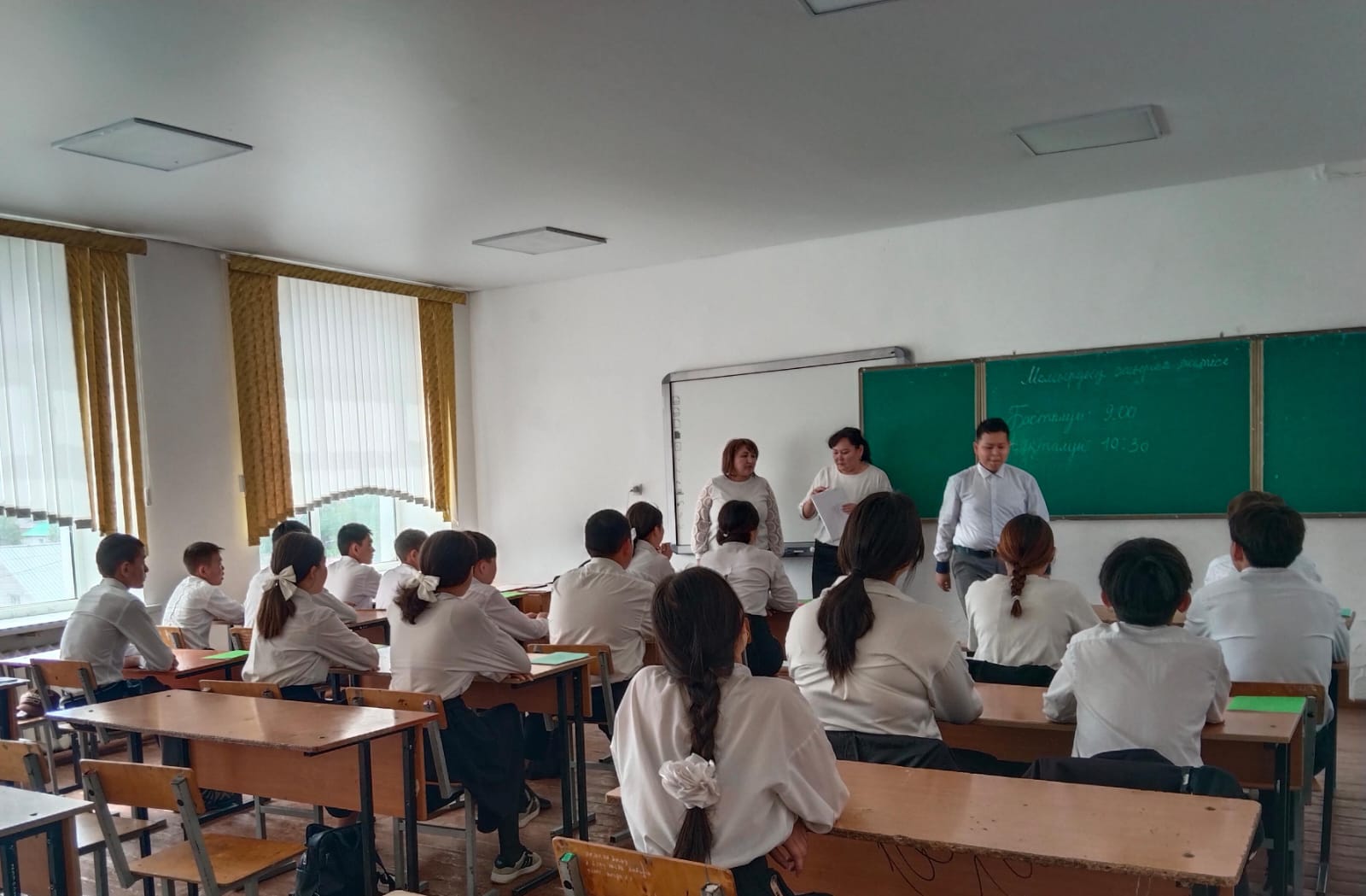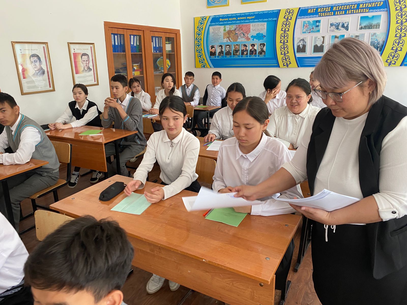 Қазақ тілі бойынша емтихан 128-бұйрықтың 35 тармағына сәйкес білім алушылардың бағдарлама мазмұнын меңгеруін бағалау мақсатында жазбаша нысанда жүргізілді.Жазбаша емтиханға 2 сағат уақыт бөлінді.Емтихан 9.00-де басталып, 10.00-де, сондай-ақ 11.00-де басталып, 13.00-де аяқталды.Емтиханға 314 оқушы қатысты.Емтихан басында оқушыларға мектеп директоры Ж.С.Сапакова сәттілік тілеп, оқу ісінің меңгерушісі А.О.Ахметкаримова емтихан өткізу талабымен таныстырды.Емтихан жұмыстары толықтай тексеріліп, хаттама толтырылды.