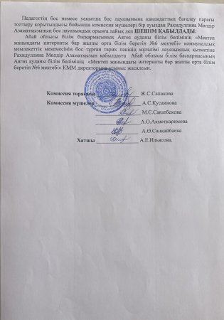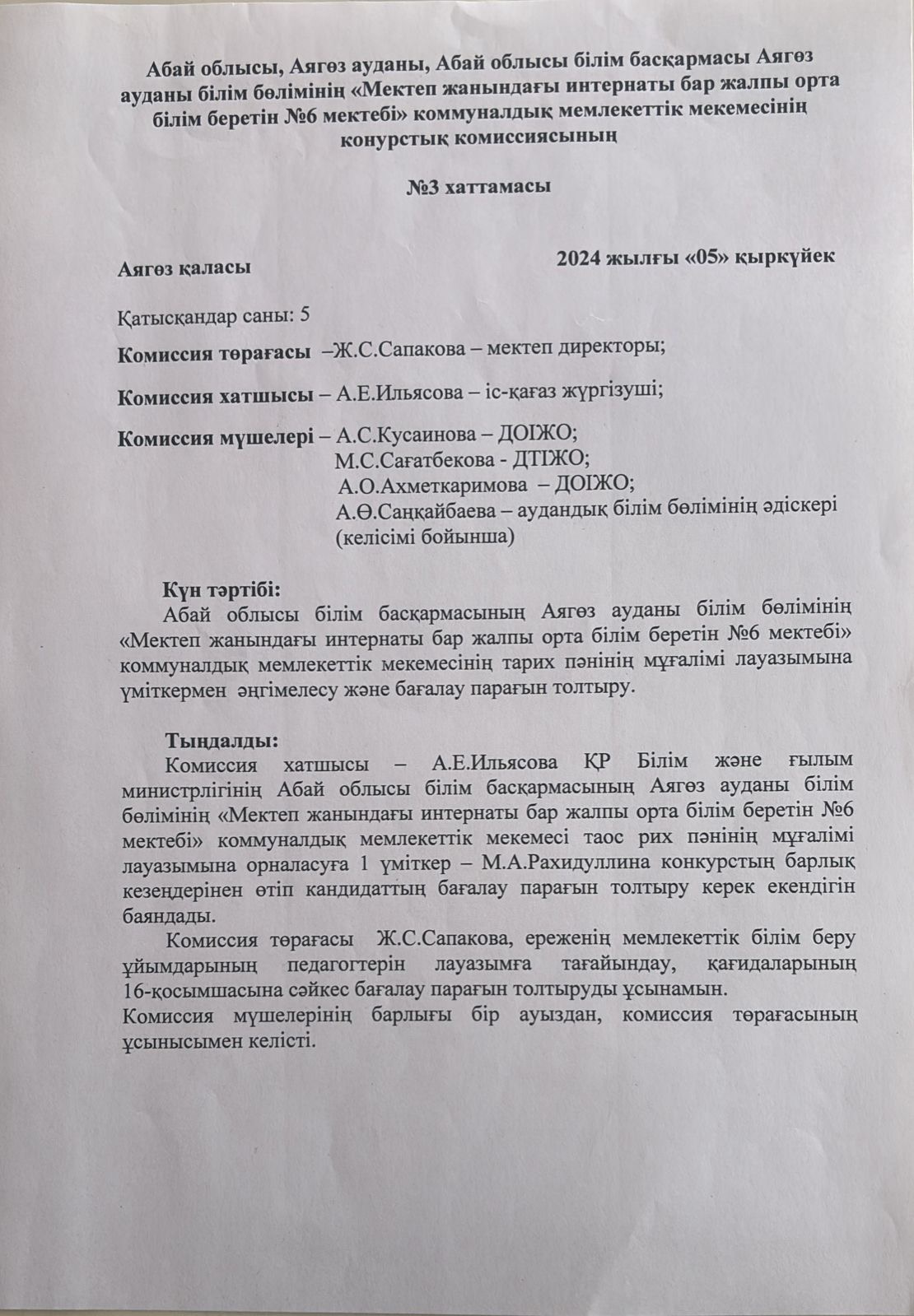Абай облысы білім басқармасының Аягөз ауданы білім бөлімінің «Мектеп жанындағы интернаты бар жалпы орта білім беретін № 6 мектебі»
