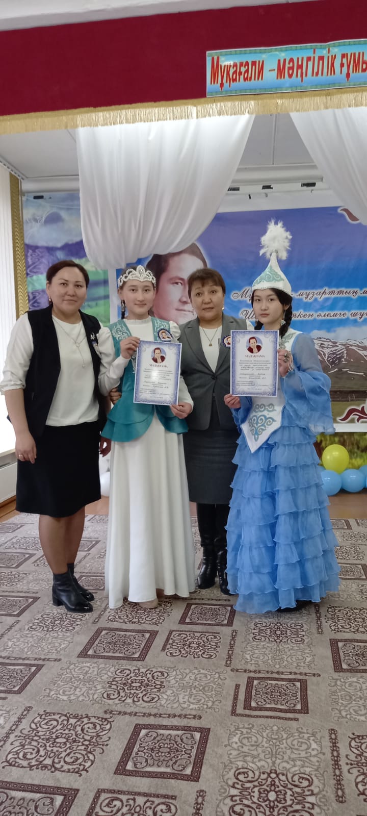 Ақпан айының 2-жұлдызында «Мектеп жанындағы интернаты бар жалпы орта білім беретін №6 мектебі» КММ -де дәстүрлі Республикалық Мұқағали оқулары байқауының аудандық кезеңі болып өтті. Байқауға ауданымыздың мектебінен дарынды оқушылар қатысып, арнай 7 бөлім бойынша бақтарын сынады. Оқушылар үлкен дайындықпен келген. Байқау қорытындысы бойынша біздің мектебіміздің 9 – сынып оқушысы бойынша Сабырджанова Ақбота «Бас жүлдені» иеленіп, облысқа жолдама иегері атанды. Мектебіміздің мәртебесін асқақтатқан Ақбота оқушымызға сәттілік тілеп, облыс көлемінде өтетеін байқауда Аягөз ауданының намысын қорғауына ниеттеспіз.