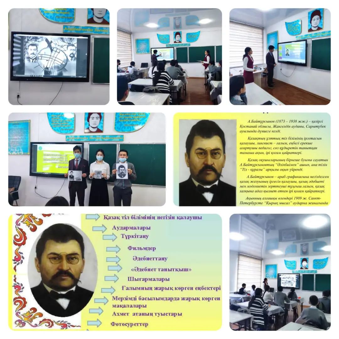 Ұлттың ұлы ұстазы- Ахмет Байтұрсынұлының туған күніне орай "Ахмет Байтұрсынов -ұлт ұстазы" тақырыбында ашық тәрбие сағаты өткізілді: Сабақтың мақсаты: Ұлт ұстазы жайлы білімдерін кеңейту. Оқушылардың өз бетінше ізденіс пен жұмыс істеу қабілетін дамыту. 8 "Б" сынып жетекшіші: Муканова М.