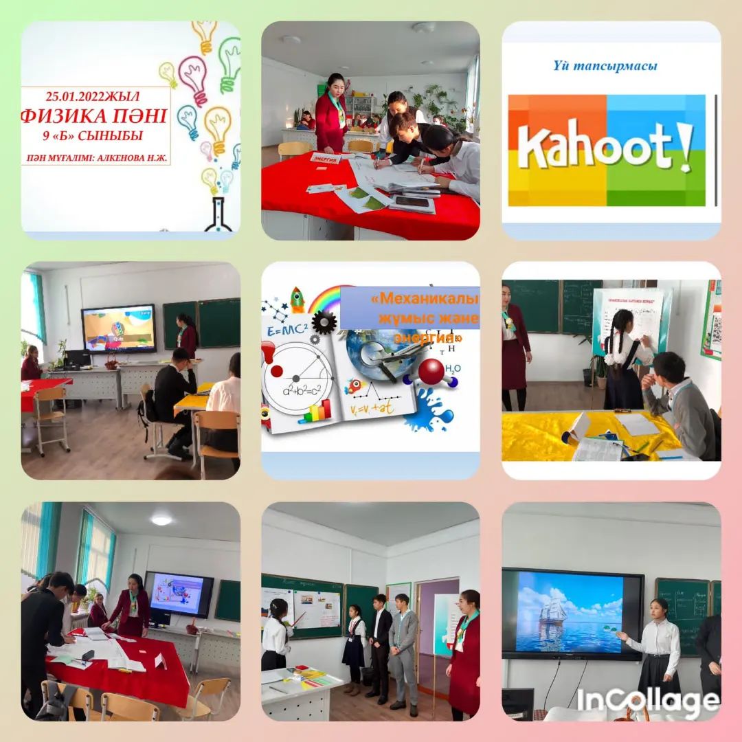 Физика пәнінен "Механикалық жұмыс және энергия" тақырыбында 9 "Б" сыныбында ашық сабақ өтті.
