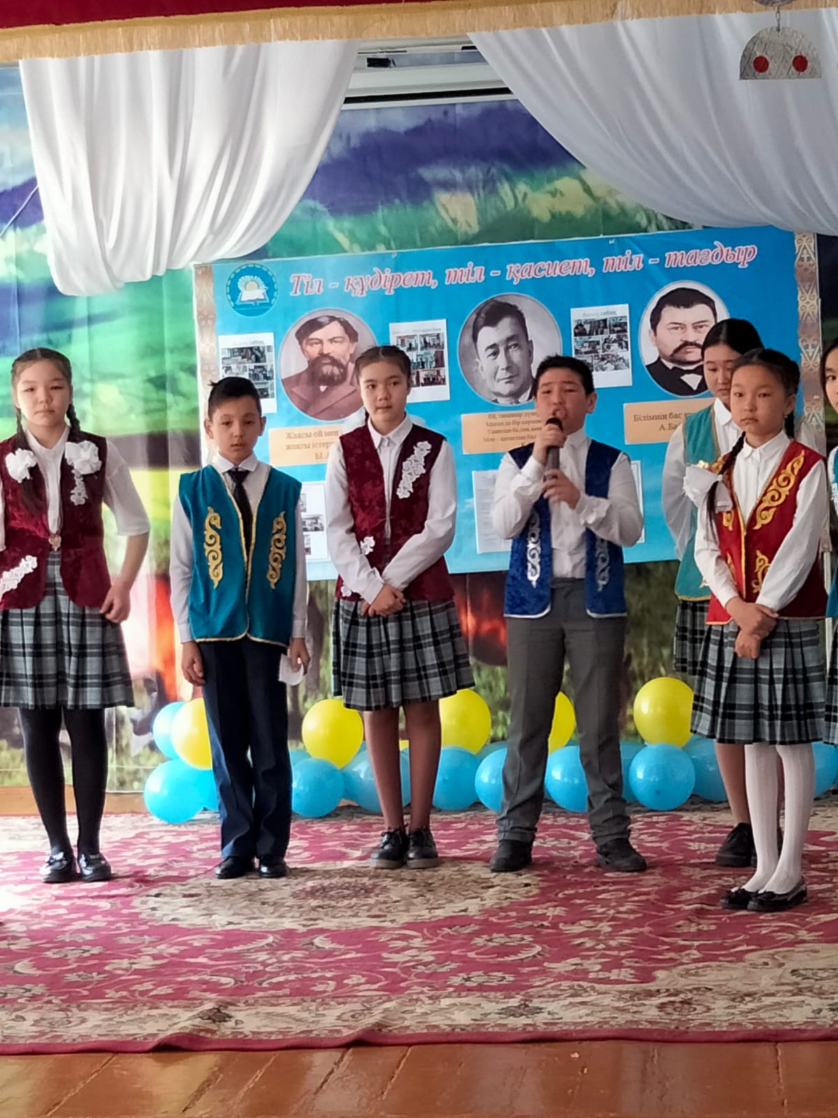 "Тіл - құдірет, тіл - қасиет, тіл - тағдыр" атты қазақ тілі мен әдебиеті пән апталығының жабылу салтанаты болып өтті. Апталықтың жабылуы қазақтың біртуар ақыны Қасым Аманжоловтың 110 жылдығына арналған шығармашылық кеш ұйымдастырылуымен өтілді. Мақсаты: оқушыларға ана тілінің құдіреті, қасиетін сезіндіре отырып, ұлтына деген, отанына деген патриоттық сезімдерін ояту. Қасым ақынның шығармашылығын танып білу.