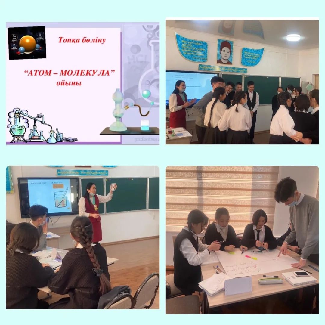 “Мектеп жанындағы интернаты бар жалпы орта білім беретін #6 мектебі” КММ “Жаратылыс сыры - ғылымда” атты пәндер апталығының аясында 11А сыныбына “Жарықтың сыну заңы. Толық ішкі шағылу” тақырыбында ашық сабақ өтілді.Сабақ басында “Атом - Молекула” ойыны арқылы жағымды ахуал жасалып, 3 топқа бөлінді.