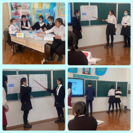 Жаңа тақырыпқа байланысы бейнематериал көрсетіліп, берілген ақпаратты мұғалім оқушылармен талқылады. Топпен жұмыс жүргізіліп, постер арқылы қорғалды. Топтар бір-бірін “Бас бармақ” әдісі арқылы бағалады.