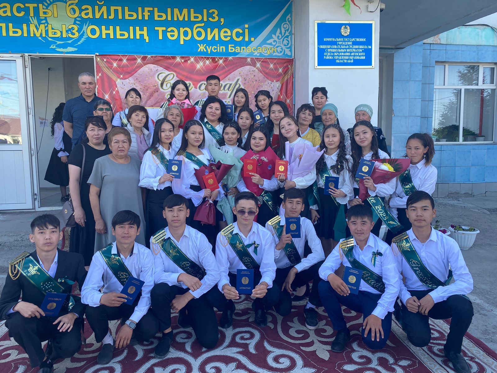 «Мектеп жанындағы интернаты бар жалпы орта білім беретін #6 мектебі» КММ-ның 9 сынып оқушыларына “Негізгі орта білім туралы аттестат” беріліп, қолдарына алғашқы құжаттары табысталды. Мектеп директоры Ж.С.Сапакова құттықтау сөз сөйлеп, оқушыларымызға ақ жол тіледі!