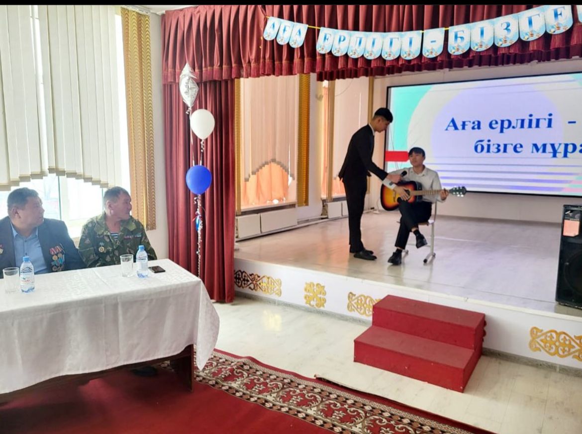 Кеңес әскерінің Ауған жерінен шығарылғанына З5 жыл толуына орай 9 -шы сынып оқушылары арасында Ауған соғысы ардагерлері Қасенов Төлеген Төлеубайұлы және Ахметов Серік Қажыкенұлымен кездесу өтті.