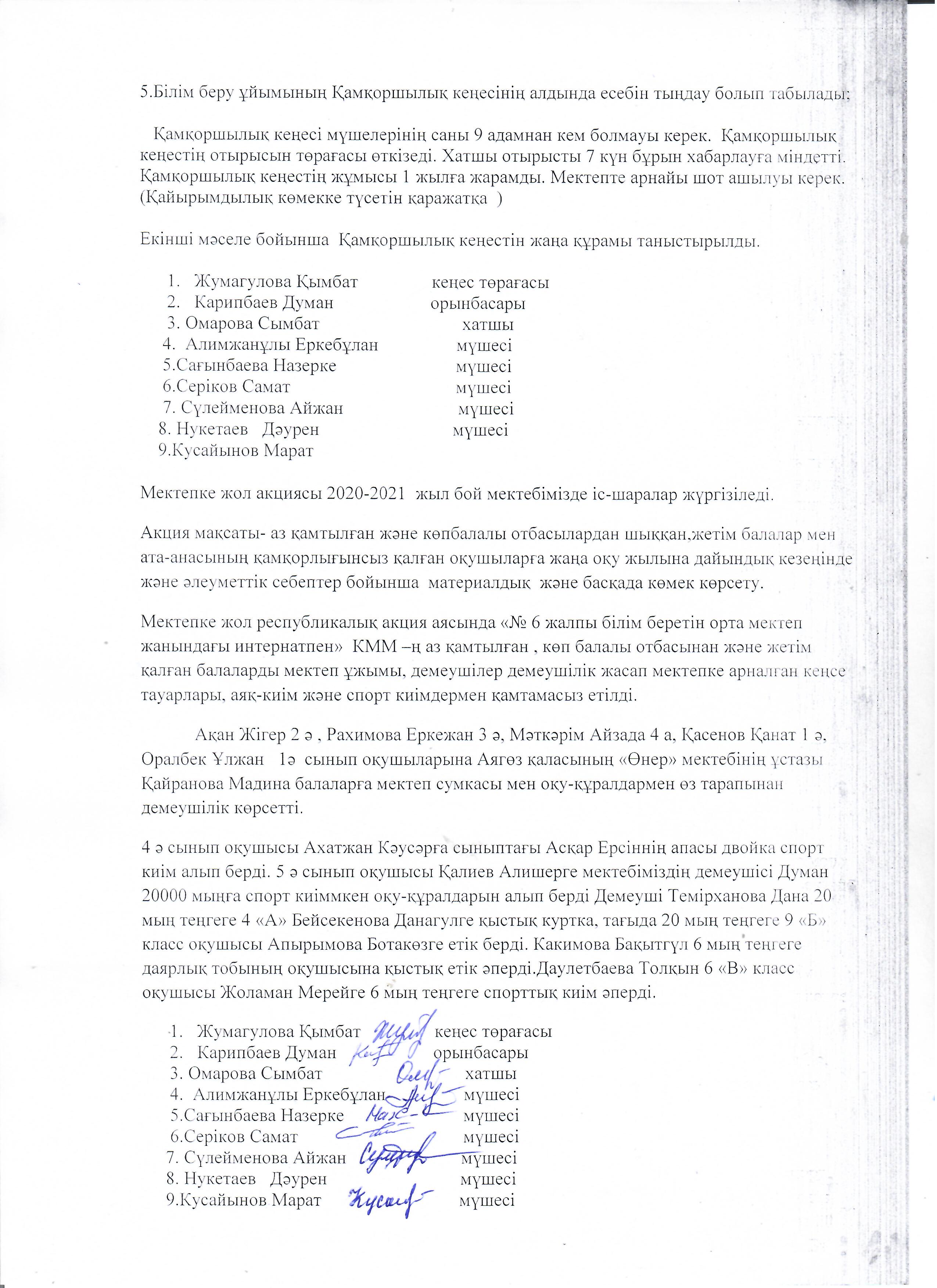 Абай облысы білім басқармасының Аягөз ауданы білім бөлімінің «Мектеп жанындағы интернаты бар жалпы орта білім беретін № 6 мектебі»