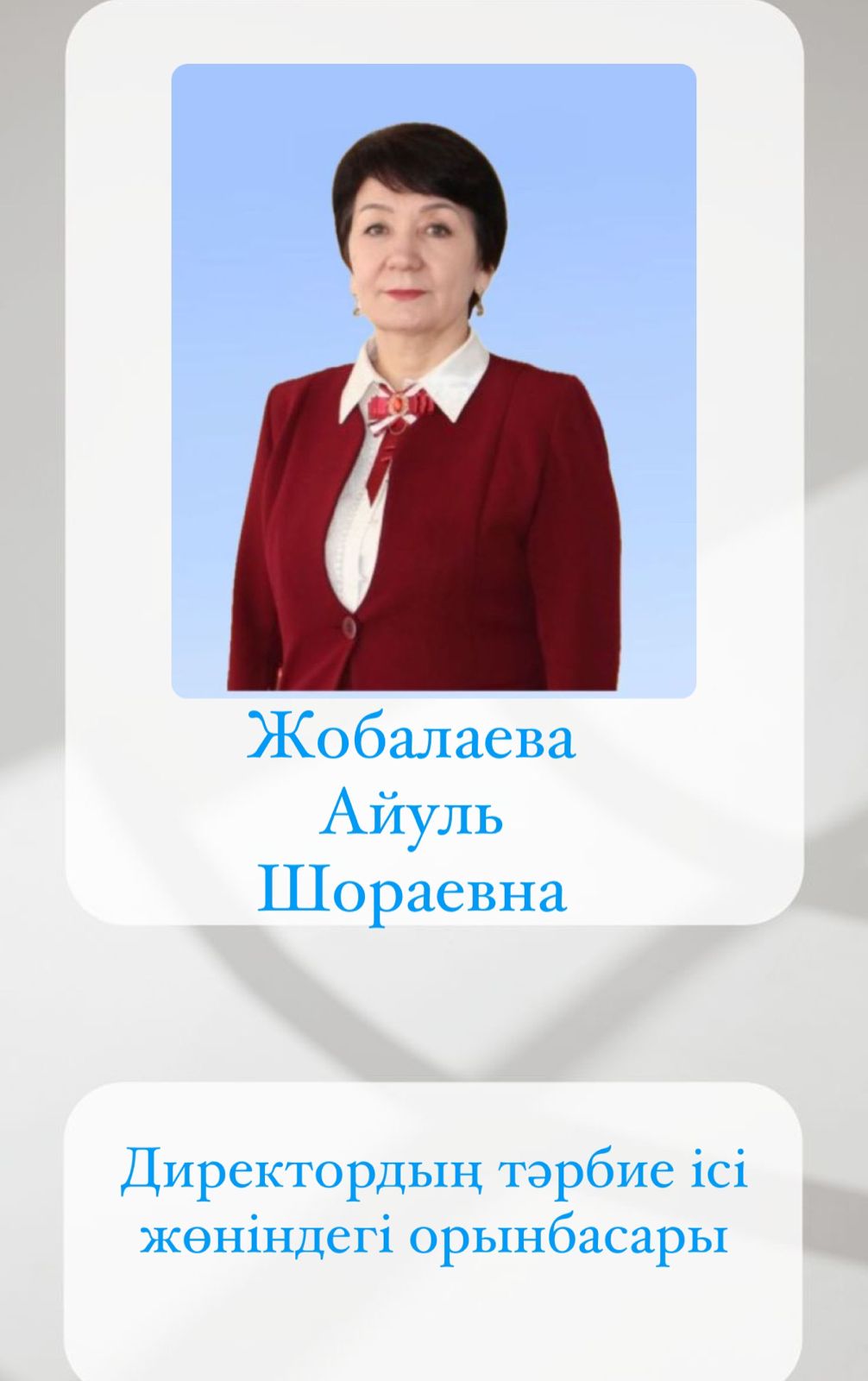 "Мектеп жанындағы интернаты бар жалпы орта білім беретін №6 мектебі" КММ-ның тәрбие ісі жөніндегі орынбасары Жобалаева Айгуль Шораевна