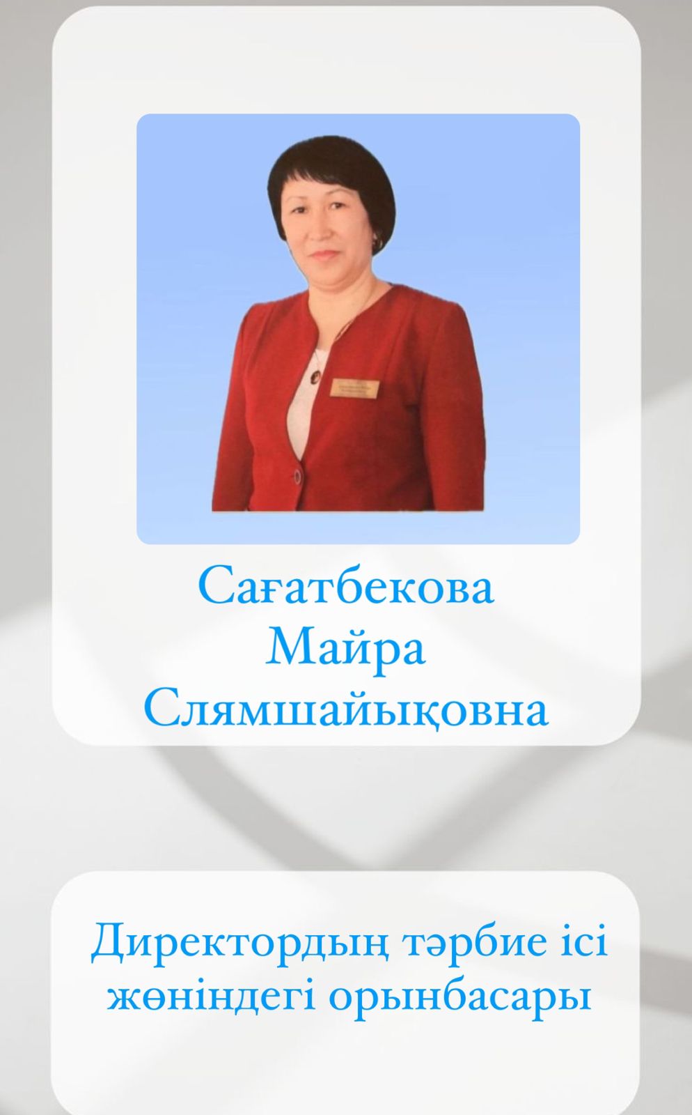 "Мектеп жанындағы интернаты бар жалпы орта білім беретін №6 мектебі" КММ-ның тәрбие ісі жөніндегі орынбасары