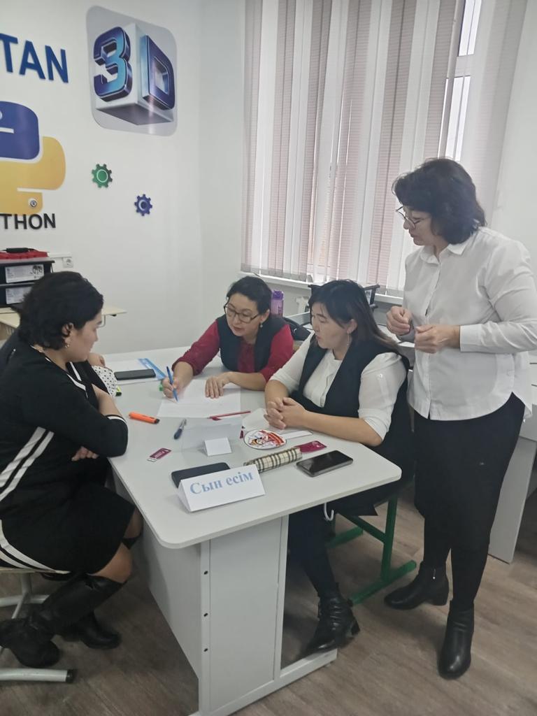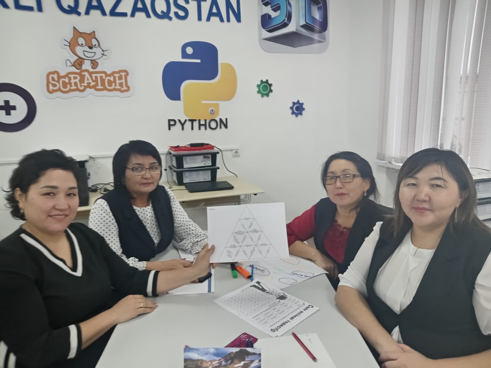 Шебер сынып барысында “Біріктіру”, ”Дауыстап оқу”, ”Атаулы үш сұрақ” әдістері және топтық жұмыста “Тұжырымдамалық кесте” арқылы жандандырылып, “Тарсия” әдісі арқылы кері байланыс жасалып қортындыланды.