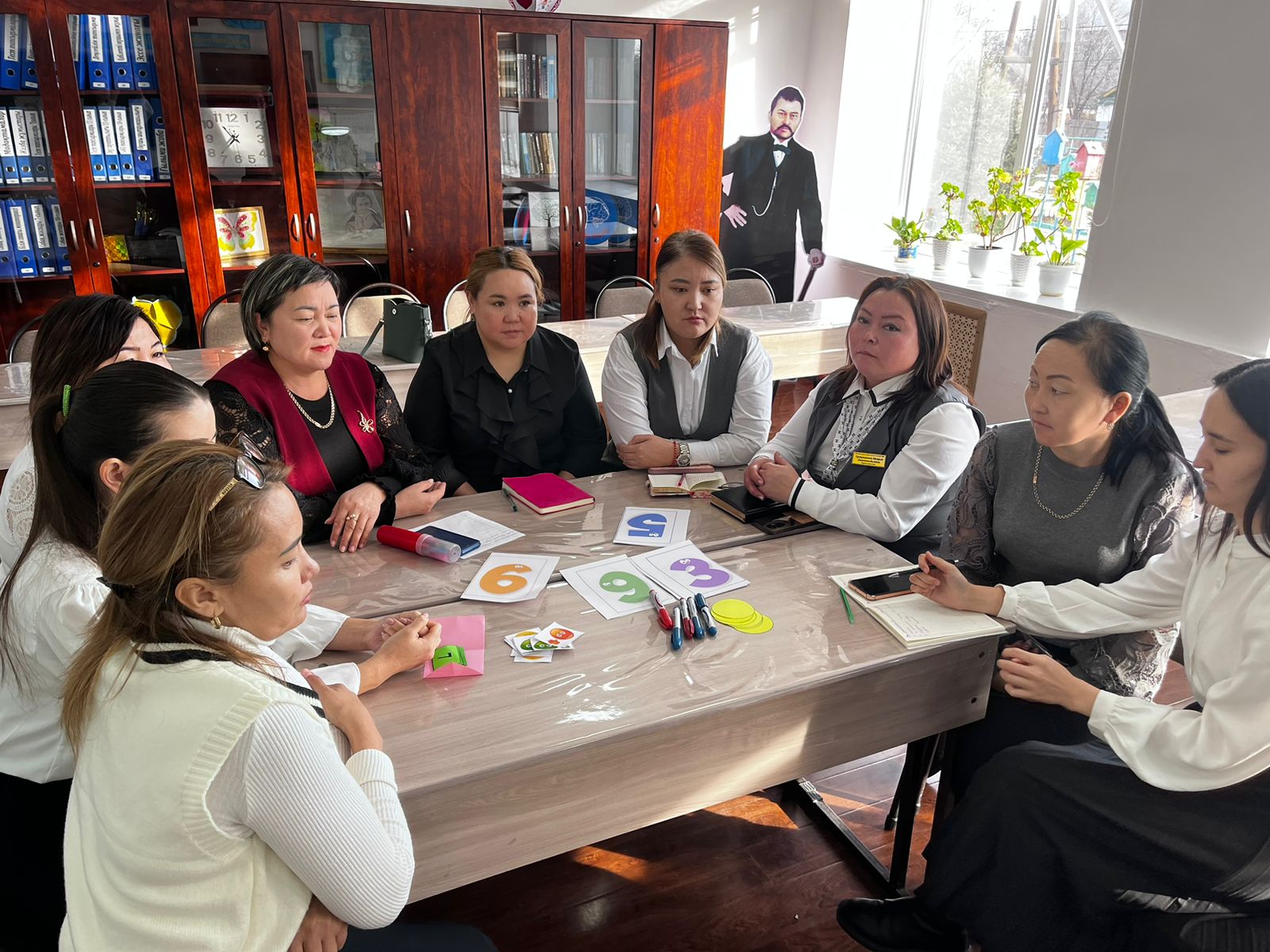 Арнайы педагог Ж.Жарылкасынованың кіші топпен өткізген сабағы тақырыбы:Бір таңбалы сандар құрамы:10 көлеміндегі кестелік қосу және азайтуды, 10 көлеміндегі нумерацияны, 10 көлеміндегі сандардың құрамын қайталау,сандардың қатарын ажырата білу қабілеттерін дамыту.