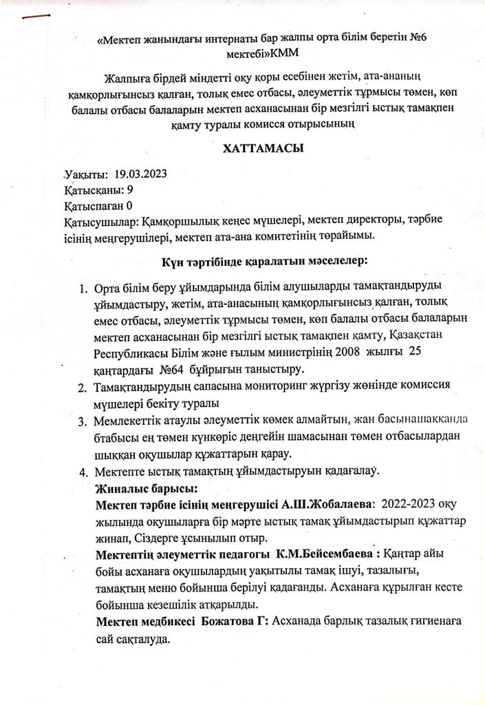 Абай облысы білім басқармасының Аягөз ауданы білім бөлімінің «Мектеп жанындағы интернаты бар жалпы орта білім беретін № 6 мектебі»