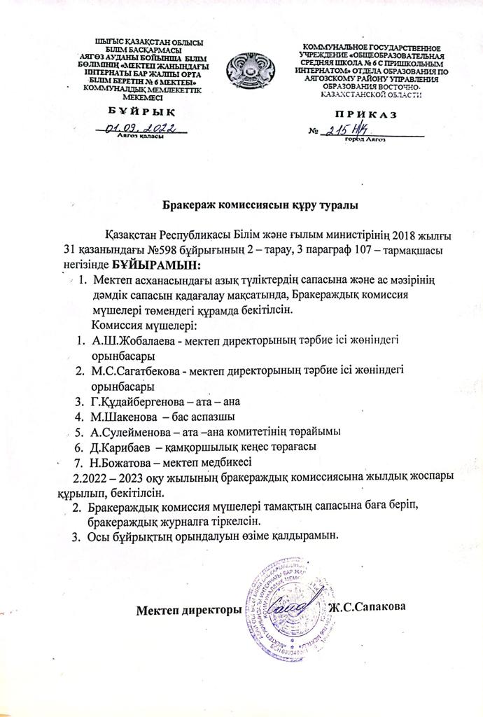 Абай облысы білім басқармасының Аягөз ауданы білім бөлімінің «Мектеп жанындағы интернаты бар жалпы орта білім беретін № 6 мектебі»