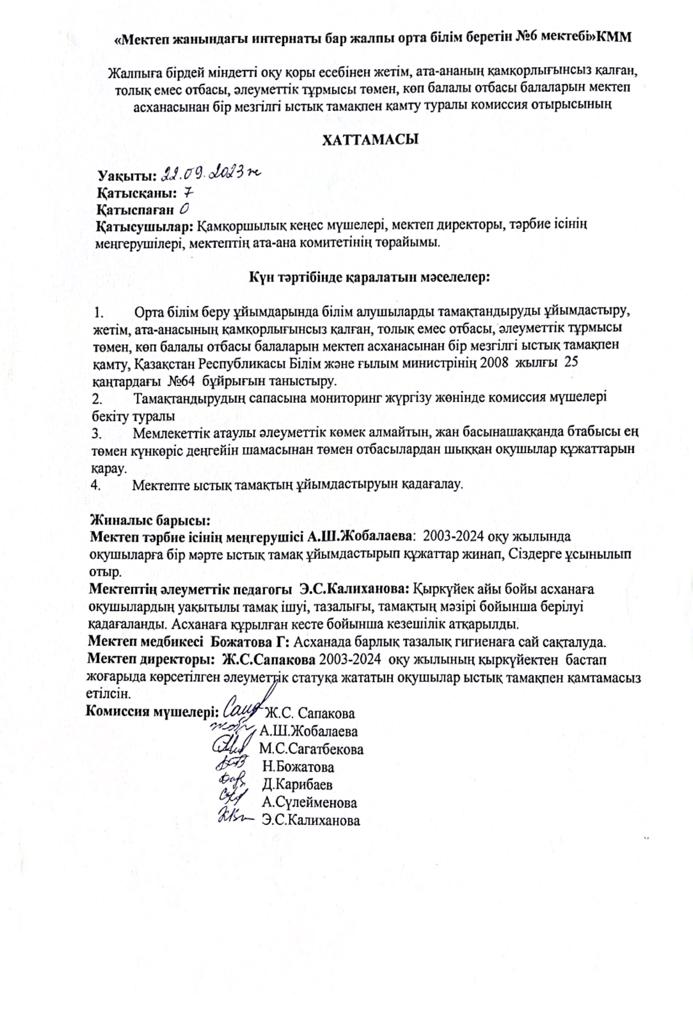 Абай облысы білім басқармасының Аягөз ауданы білім бөлімінің «Мектеп жанындағы интернаты бар жалпы орта білім беретін № 6 мектебі»