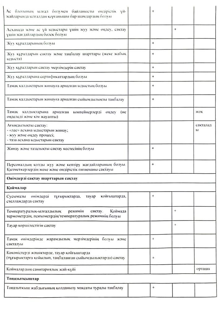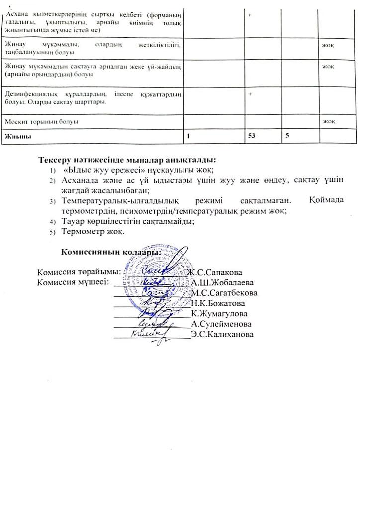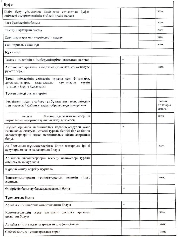 » Тамақтану сапасына мониторинг жүргізі актісі