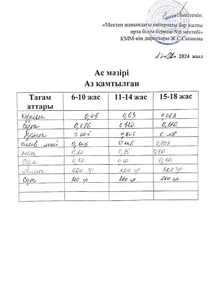 Күн мәзіріне берілетін ыстық тамақ 17.01.2024ж