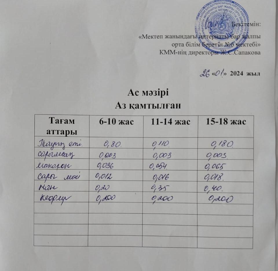 Күн мәзіріне берілетін ыстық тамақ 25.01.2024ж