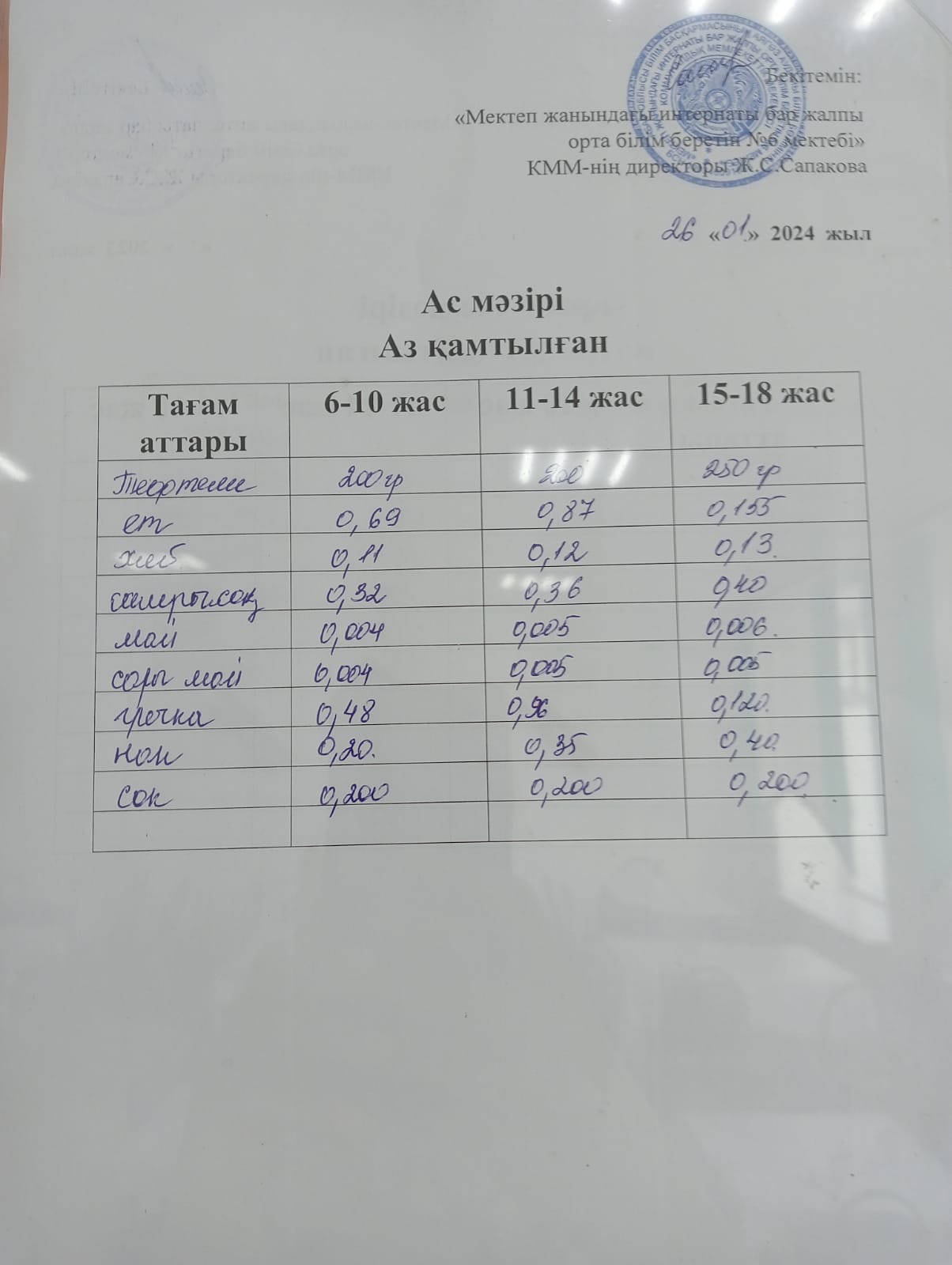 Күн мәзіріне берілетін ыстық тамақ 26.01.2024ж