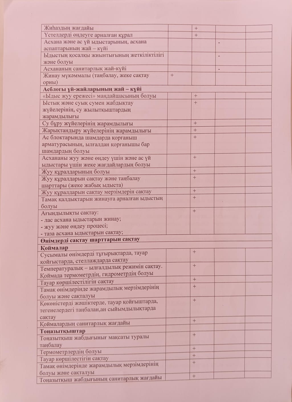 » Тамақтану сапасына мониторинг актісі.Хаттамасы