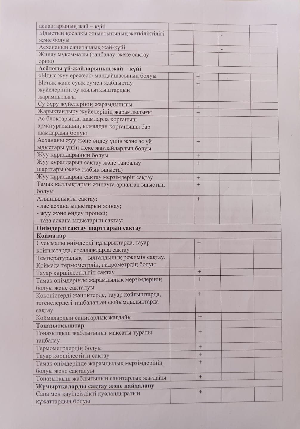 » Тамақтану сапасына мониторинг актісі.Хаттамасы