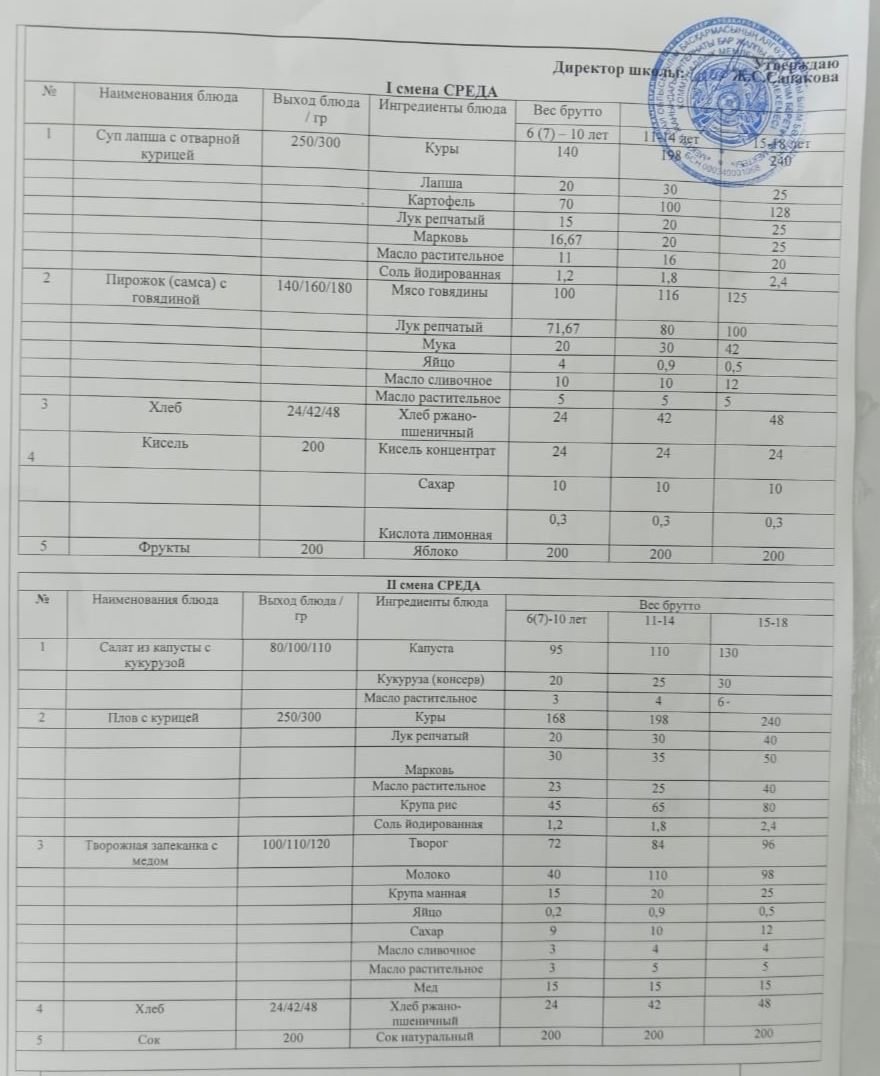 Қүн мәзіріне берілетін ыстық тамақ 10.04.2024