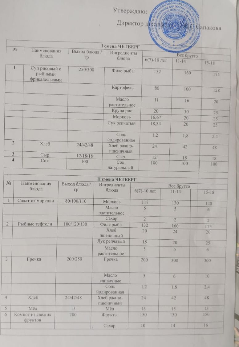 Күн мәзіріне берілетін ыстық тамақ 11.04.2024