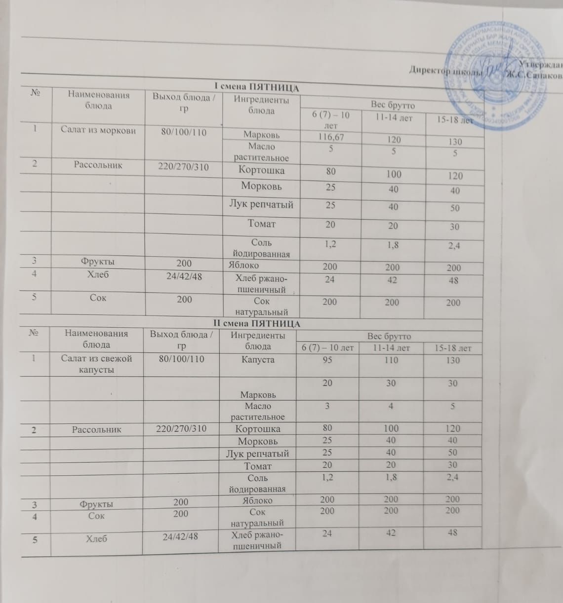 Күн мәзіріне берілетін ыстық тамақ 19.04.2024